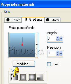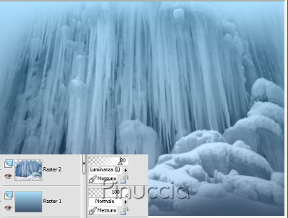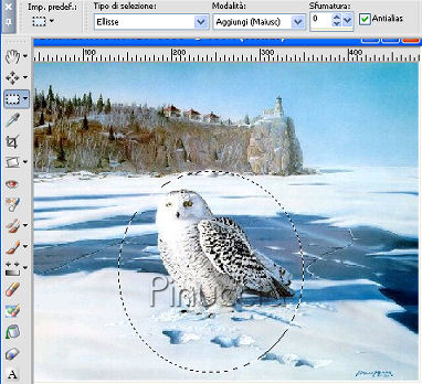 qui puoi trovare qualche risposta ai tuoi dubbi. Se l'argomento che ti interessa non è presente, ti prego di segnalarmelo. Questo tutorial è stato scritto con PSP X2, ma può essere eseguito anche con le altre versioni di PSP. Per tradurlo, l'ho eseguito con PSPX. Occorrente: Materiale qui I tubes che ho usato sono di Dieter&Marion e Missilly. Non conosco l'autore dell'immagine con la civetta. Se mi sarà comunicato darò all'autore il giusto credito. Rispetta il lavoro degli autori e mantieni inalterati i tubes. Imposta il colore di primo piano con #3d536b, e il colore di sfondo con #ace1ff. Passa il colore di primo piano a Gradiente di primo piano/sfondo, stile lineare: ![]() Apri una nuova immagine trasparente 800 x 600 pixels, e riempila con il gradiente.Livelli>Nuovo livello raster. Selezione>Seleziona tutto. Apri "mds7135 Yoho_National_Park_British_Columbia.pspimage", e vai a Modifica>Copia. Torna al tuo lavoro e vai a Modifica>Incolla nella selezione. Selezione>Deseleziona. Immagine>Ridimensiona, al 115%, tutti i liveli non selezionato. Cambia la modalità di miscelatura di questo livello in Luminanza (Esistente), e abbassa l'opacità all'80%. ![]() Apri Misssilly-MistedLady-Jan2008.psp, e vai a Modifica>copia. Torna al tuo lavoro e vai a Modifica>Incolla come nuovo livello. Immagine>Ridimensione, all'80%, tutti i livelli non selezionato. Sposta il tube in basso a sinistra.Cambia la modalità di miscelatura di questo livello in luminanza (esistente). Livelli>Duplica. Livelli>Unisci>Unisci giù. ![]() Apri "rw-majestic_wolves.pspimage", e vai a Modifica>Copia. Torna al tuo lavoro e vai a Modifica>Incolla come nuovo livello. Immagine>Rifletti. Immagine>Ridimensiona, all'80%, tutti i livelli non selezionato, 2 volte. Sposta il tube in basso vicino al bordo.Cambia la modalità di miscelatura di questo livello in Luminanza (Esistente). Apri "Misted_Polar_Bears_RM2.pspimage", e vai a Modifica>Copia. Torna al tuo lavoro e vai a Modifica>Incolla come nuovo livello. Sposta questo tube in basso, vicino ai lupi.Cambia la modalità di miscelatura di questo livello in Luminanza (Esistente). ![]() Apri "Bruce%20M%20Wildlife%20#0005.jpg.". Apri lo strumento Selezione , ellisse,e traccia una selezione intorno all'animale. ![]() Selezione>modifica>Sfuma - 20 pixels. Modifica>Copia. Torna al tuo lavoro e vai a Modifica>Incolla come nuovo livello. sposta la civetta nell'angolo in basso a destra.Cambia la modalità di miscelatura di questo livello in Luminanza (Esistente), e abbassa l'opacità all'85%. Immagine>Ridimensiona, al 90%, tutti i livelli non selezionato, per 2 volte. Attiva lo strumento Gomma ![]() ![]() e cancella con cura il segno dei bordi intorno alla civetta. ![]() Apri "Misssilly-MistedFace-Jan2008.psp", e vai a Modifica>Copia. Torna al tuo lavoro e vai a Modifica>Incolla come nuovo livello. Sposta questo tube in alto vicino al bordo.Cambia la modalità di miscelatura di questo livello in Luminanza (Esistente). Livelli>Unisci>Unisci tutto. Modifica>Copia. Modifica>Incolla come nuovo livello. Immagine>Ridimensiona, al 90%, tutti i livelli non selezionato. Selezione>Seleziona tutto. Selezione>Mobile. Selezione>Inverti. Livelli>Nuovo livello raster. Riempi la selezione con il bianco.Selezione>modifica>Contrai di 2 pixels. Premi una volta sulla tastiera il tasto CANC ![]() Livelli>Nuovo livello raster. Riempi la selezione con il bianco.Selezione>Deseleziona. Abbassa l'opacità di questo livello al 44%. Attiva il livello Sfondo. Regola>Sfocatura>Sfocatura gaussiana, raggio 5. ![]() Attiva il livello superiore. Attiva lo strumento Testo e scegli un bel font.Io ho usato il font International Palms, dimensione 72, pennellata 1. Scrivi il tuo testo sull'immagine e posizionalo. Livelli>Converti in livello raster. Selezione>Seleziona tutto. Selezione>Mobile. Selezione>Modifica>Contrai, di 1 pixel. Modifica>Copia. Livelli>Nuovo livello raster. Modifica>Incolla nella selezione. Posizionati sul livello Raster 4 (il livello originale del testo), premi una volta sulla tastiera il tasto CANC. Selezione>Deseleziona. Effetti>Effetti 3D>Sfalsa ombra, con i seguenti settaggi, colore nero. ![]() Attiva il livello Raster 5 e abbassa l'opacità di questo livello al 40%. Aggiungi il tuo nome e/o il tuo watermark. Livelli>Unisci>Unisci tutto e salva in formato jpg. ![]() Se hai problemi o dubbi, o trovi un link non funzionante, o anche soltanto per un saluto, scrivimi 13 Febbraio 2008 |