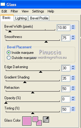 Effetti>Plugins>Eye Candy 4000 - Glass, con il colore di primo piano - 2 volte, con questi settaggi.