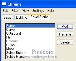 Bevel profile impostato su Button, e Basic con i seguenti settaggi: