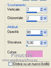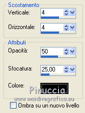 Ripeti Effetti>Effetti 3D>Sfalsa ombra, con il colore di primo piano e questi settaggi.
