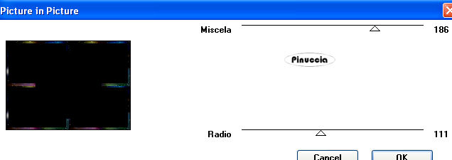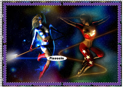 qui puoi trovare qualche risposta ai tuoi dubbi. Se l'argomento che ti interessa non è presente, ti prego di segnalarmelo. Questo tutorial è stato scritto con PSP X2, ma può essere eseguito anche con le altre versioni di PSP. Per tradurlo, ho usato PSP X. ©Biene - tutti i diritti riservati. Il © della traduzione è mio. Occorrente: A scelta due immagini o due tubes a tema. Per il mio esempio ho usato un'immagine http://jimcorrigan.deviantart.com/ ©Jim Corrigan. Il lavoro di Jim Corrigan non può essere usato senza il permesso dell'autore. Il resto del materiale qui Un ringraziamento ai creatori di tubes dei vari gruppi cui appartengo. Il watermark di ognuno è inserito nei tubes. Per favore, rispetta il lavoro degli autori: non cambiare il nome del file e non rimuovere il watermark. Il © appartiene agli artisti originali. Filtri: Graphics Plus - Cross Shadow qui Italian Editors - Picture in Picture qui ![]() Imposta il colore di primo piano con #5f3960, e il colore di sfondo con il nero. Apri una nuova immagine trasparente 650 x 450 pixels, e riempila con il colore nero (tasto destro del mouse).Apri background_halo_sky_dance_biene.pspimage e vai a Modifica>Copia. Torna al tuo lavoro e vai a Modifica>Incolla come nuovo livello. Cambia la modalità di miscelatura di questo livello in Luce netta, e abbassa l'opacità al 49%. Livelli>Duplica. Effetti>Effetti di bordo>Aumenta - 2 volte. Cambia la modalità di miscelatura di questo livello in Dissolvi, e abbassa l'opacità al 2%. ![]() Apri la tua prima immagine e vai a Modifica>copia. Torna al tuo lavoro e vai a Modifica>Incolla come nuovo livello. Immagine>Rifletti. Livelli>Carica/Salva maschera>Carica maschera da disco. Cerca e carica la maschera 20-20: ![]() Livelli>Unisci>Unisci gruppo. Sposta l'immagine a sinistra.Apri il tuo secondo tube (possibilmente un misted) e vai a Modifica>Copia. Torna al tuo lavoro e vai a Modifica>Incolla come nuovo livello. Spostalo a destra.Livelli>Unisci>Unisci tutto. Modifica>Copia. Selezione>Seleziona tutto. Immagine>Aggiungi bordatura, 1 pixel, simmetriche, con il colore di primo piano. Selezione>Inverti. Effetti>Plugins>Graphics Plus - Cross Shadow, con i settaggi standard. ![]() Selezione>Seleziona tutto. Immagine>Aggiungi bordatura, 23 pixels, simmetriche, con il colore nero. Livelli>Nuovo livello raster. Modifica>Incolla nella selezione. Imposta il colore di primo piano con #684399. Effetti>Plugins>Italian Editors - Picture in Picture - 2 volte. ![]() Selezione>Deseleziona. Attiva lo strumento Bacchetta magica , sfumatura e tolleranza 0,e clicca sui quattro angoli viola per selezionarli. ![]() Selezione>Innalza selezione a livello. Effetti>Plugins>Graphics Plus - Cross Shadow, con i settaggi standard. Effetti>Effetti di bordo>Aumenta. Selezione>Deseleziona. Effetti>Effetti 3D>Sfalsa ombra, con il colore nero. ![]() Ripeti l'Effetto Sfalsa ombra invertendo i settaggi verticale e orizzontale. ![]() Livelli>Duplica. Selezione>Seleziona tutto. Immagine>Aggiungi bordatura, 2 pixels, simmetriche, con il colore di primo piano. Selezione>Inverti. Effetti>Plugins>Graphics Plus - Cross Shadow. ![]() Effetti>Effetti di bordo>Aumenta. Livelli>Nuovo livello raster. Riempi la selezione con #684399.Effetti>Plugins>Graphics Plus - Cross Shadow, di nuovo con i settaggi standard. ![]() Effetti>Effetti di bordo>Aumenta. Selezione>Deseleziona. Aggiungi il tuo nome e/o il tuo watermark senza dimenticare eventuali copyright delle immagini usate. Per il mio esempio ho usato il font Chlorinut Livelli>Unisci>Unisci tutto e salva in formato jpg. Se hai problemi o dubbi, o trovi un link non funzionante, o anche soltanto per un saluto, scrivimi.