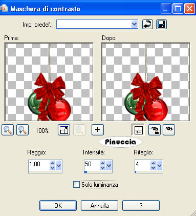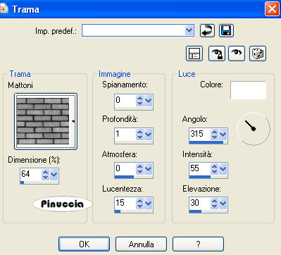qui puoi trovare qualche risposta ai tuoi dubbi. Se l'argomento che ti interessa non è presente, ti prego di segnalarmelo. Questo tutorial è stato scritto con PSP X2, ma può essere eseguito anche con le altre versioni di PSP. Per tradurlo, ho usato PSP X. Occorrente: un tube a scelta. Il resto del materiale qui Ti servirà anche il tube di un camino. Il camino che ho usato è di @Rainbow Coffi. Un ringraziamento ai creatori di tubes dei vari gruppi cui appartengo. Per favore, rispetta il loro lavoro e mantieni i tubes al loro stato originale. Apri una nuova immagine trasparente 600 x 600 pixels, e riempila con il colore bianco.Effetti>Effetti di trama>Trama - seleziona Mattoni, con i seguenti settaggi. ![]() Apri fussboden_bienemademe.pspimage e vai a Modifica>Copia. Torna al tuo lavoro e vai a Modifica>Incolla come nuovo livello. Sposta il tube in basso.Apri il tuo camino (se hai seguito il mio esempio: V-HomeforTheHolidays.psp) e vai a Modifica>Copia. Torna al tuo lavoro e vai a Modifica>Incolla come nuovo livello. Immagine>Ridimensiona, all'80%, tutti i livelli non selezionato. Regola>Messa a fuoco>Metti a fuoco. Sposta il camino sopra il pavimento.Effetti>Effetti 3D>Sfalsa ombra, con i seguenti settaggi, colore nero, ombra su nuovo livello selezionato. ![]() Attiva lo strumento Gomma , dimensione 32, opacità 10,e cancella l'ombra sotto il piano del pavimento. ![]() Apri sg_gift15.psp e vai a Modifica>Copia. Torna al tuo lavoro e vai a Modifica>Incolla come nuovo livello. Immagine>ridimensiona, al 60%, tutti i l ivelli non selezionato. Regola>Messa a fuoco>Metti a fuoco. Effetti>Effetti 3D>Sfalsa ombra, con i seguenti settaggi, colore nero (non dimenticare di togliere la selezione a Ombra su nuovo livello). ![]() Eventualmente, se vuoi, puoi aggiungere altri elementi sotto il camino. Se lo fai, applica lo stesso effetto Sfalsa ombra. Apri BPS Holiday Poinsetta1 Display designed by _.psp e vai a Modifica>Copia. Torna al tuo lavoro e vai a Modifica>Incolla come nuovo livello. Immagine>Ridimensiona, al 90%, tutti i livelli non selezionato. Regola>Messa a fuoco>Metti a fuoco. Sposta la ghirlanda sopra il camino.Effetti>Effetti 3D>Sfalsa ombra, con i settaggi precedenti. Apri w-deko_biene_mademe.pspimage e vai a Modifica>Copia. Torna al tuo lavoro e vai a Modifica>Incolla come nuovo livello. Immagine>ridimensiona, al 90%, tutti i livelli non selezionato. Regola>Messa a fuoco>Maschera di contrasto. ![]() Sposta le palline in alto a destra.Effetti>Effetti 3D>sfalsa ombra, con i seguenti settaggi, colore nero. ![]() Apri il tuo tube e vai a Modifica>Copia. Torna al tuo lavoro e vai a Modifica>Incolla come nuovo livello. Ridimensiona, se e quanto necessario. Sposta il tube in basso a sinistra.Effetti>Effetti 3D>Sfalsa ombra, con i settaggi precedenti. Livelli>Nuovo livello raster. Selezione>Seleziona tutto. Selezione>Modifica>Contrai 5 pixels. Selezione>inverti. Riempi con un colore rosso scelto dalla tua immagine.Selezione>Seleziona tutto. Selezione>Modifica>Contrai - 2 pixels. Livelli>Nuovo livello raster. Riempi la selezione con il colore bianco.Selezione>Modifica>Contrai - 1 pixel. Premi sulla tastiera il tasto CANC ![]() Selezione>Deseleziona. Aggiungi il tuo nome e/o il tuo watermark. Livelli>Unisci>Unisci tutto e salva in formato jpg. Varianti animate: ![]() ![]() Se hai problemi o dubbi, o trovi un link non funzionante, o anche soltanto per un saluto, scrivimi 24 Novembre 2008 |