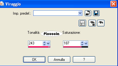 Regola>Tonalità e Saturazione>Viraggio, con i settaggi precedenti.