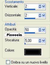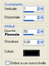 Effetti>Effetti 3D>Sfalsa ombra, con i seguenti settaggi, colore nero.