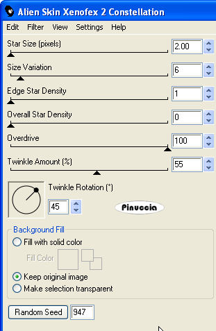 Ripeti l'Effetto Constellation, con gli stessi settaggi, ma cliccando una volta su Random Seed.