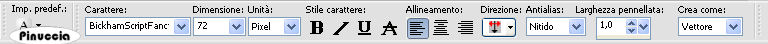 Per il mio esempio ho usato il font Bickham Script Fancy 2, dimensione 72: