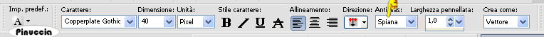 Per il mio esempio ho usato Copperplate Gothic Bold - dimensione 40 - pennellata 1 - spiana e antialias selezionato - crea come vettore.