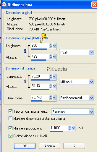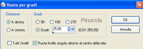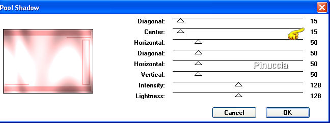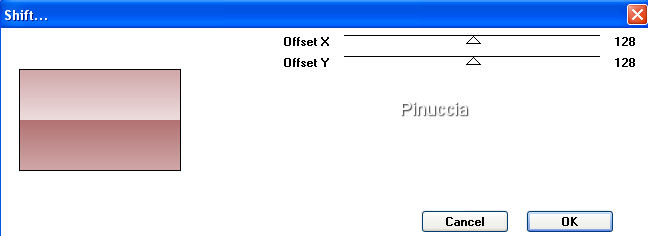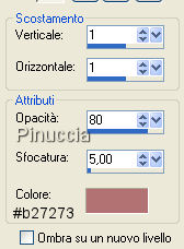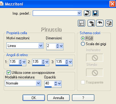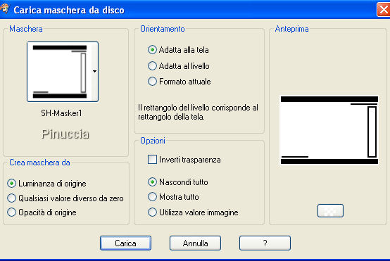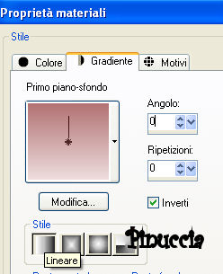 qui puoi trovare qualche risposta ai tuoi dubbi. Se l'argomento che ti interessa non è presente, ti prego di segnalarmelo. Questo tutorial è stato scritto con PSP X, ma può essere eseguito anche con le altre versioni di PSP. Occorrente: Materiale qui Metti la Maschera nella cartella Maschere di PSP. Metti il Pennello nella cartella dei Pennelli. Se hai problemi con i pennelli vedi qui Filtri: Mura's Seamless qui Greg's Factory Output II qui Imposta il colore di primo piano con #b27273, e il colore di sfondo con #eddcdc. Apri una nuova immagine trasparente 700 x 500 pixels, e riempila con il colore di primo piano (#b27273.).Livelli>Nuovo livello raster. Riempi con #eddcdc.ricorda che, per riempire con il colore di sfondo, devi cliccare con il tasto destro del mouse. Livelli>Carica/Salva maschera>Carica maschera da disco. Cerca e carica la maschera SH-Masker1: ![]() Livelli>Unisci>Unisci gruppo. Abbassa l'opacità di questo livello al 40%. Livelli>Unisci>Unisci giù. Effetti>Plugins>Greg's Factory Output II - Pool Shadow, con i seguenti settaggi: ![]() Abbassa l'opacità di questo livello al 38%. Livelli>Unisci>Unisci tutto. Effetti>Effetti di bordo>Erodi. Apri mc2472.psp, e vai a Modifica>Copia. non chiuderlo, perchè ti servirà ancora. Torna al tuo lavoro e vai a Modifica>Incolla come nuovo livello. Sposta il tube a sinistra, con la spalla un po' fuori dall'immagine,vedi il mio esempio. Cambia la modalità di miscelatura di questo livello in Luminanza (esistente), e abbassa l'opacità al 60%. Chiudi tutti i livelli. Livelli>Nuovo livello raster. Imposta il colore di primo piano con il bianco (#ffffff). Riempi il nuovo livello con il bianco.Abbassa l'opacità di questo livello al 44%. Rendi nuovamente visibili tutti i livelli. Livelli>Unisci>Unisci giù. Livelli>Unisci>Unisci visibile. Abbassa l'opacità di questo livello uniti al 71%. Livelli>Unisci>Unisci tutto. ![]() Apri nuovamente il tube mc2472.psp, e vai a Modifica>Copia. Torna al tuo lavoro e vai a Modifica>Incolla come nuovo livello. Immagine>Rifletti. Sposta il tube a destra, con la spalla un po' fuori dal bordo.Livelli>Unisci>Unisci visibile. Selezione>Seleziona tutto. Selezione>Modifica>Contrai, di 2 pixels. Selezione>Inverti. Imposta nuovamente il colore di primo piano con #b27273. Riempi il bordo con questo colore.Mantieni selezionato. Effetti>Plugins>Greg's Factory - Pool Shadow, con i settaggi precedenti. Effetti>Effetti artistici>Mezzitoni, con i seguenti settaggi: ![]() Selezione>Deseleziona. Livelli>Unisci>Unisci tutto. Metti da parte l'immagine, per il momento. Apri una nuova immagine trasparente 800 x 600 pixels. Passa il colore di primo piano a Gradiente di primo piano/sfondo, con i seguenti settaggi: ![]() Riempi l'immagine con questo colore.Effetti>Plugins>Mura's Seamless - Shift, con i settaggi standard. ![]() Effetti>Plugins>Greg's Factory - Pool Shadow, con i settaggi precedenti. Apri anjasdreams_flower24.psp, e vai a Modifica>Copia. non chiuderlo, perchè ti servirà ancora. Torna al tuo lavoro e vai a Modifica>Incolla come nuovo livello. Sposta i fiori in alto a sinistra, non completamente contro il bordo, vedi il mio esempio.Abbassa l'opacità di questo livello al 40%. Effetti>Effetti di bordo>Aumenta. Livelli>Duplica. Immagine>Capovolgi. Immagine>Rifletti. Attiva l'immagine che hai messo da parte. Immagine>Ridimensiona, a 600 pixels di larghezza. ![]() Modifica>Copia. Torna all'immagine più grande (800x600) e vai a Modifica>Incolla come nuovo livello. Spostala a destra, ma non completamente contro il bordo, vedi il mio esempio.Effetti>Effetti 3D>Sfalsa ombra, con i seguenti settaggi. ![]() Ripeti l'Effetto Sfalsa ombra, ma cambiando verticale e orizzontale a -1. Livelli>Nuovo livello raster. Imposta il colore di primo piano con #9e5658. Attiva lo strumento Pennello ![]() cerca e seleziona il pennello friend001.PspBrush., dimensione 450 e rotazione a 270 gradi: ![]() Applicalo sull'immagine, a sinistra, cliccando con il tasto sinistro del mouse, per usare il colore di primo piano. Apri nuovamente anjasdreams_flower24.psp. Immagine>Ridimensiona, al 50%. Modifica>Copia. Torna al tuo lavoro e vai a Modifica>Incolla come nuovo livello. Regola>Messa a fuoco>Metti a fuoco. Sposta i fiori nell'angolo in alto a sinistra dell'immagine interna.Effetti>Effetti 3D>Sfalsa ombra, con i settaggi precedenti. Livelli>Duplica. Immagine>Capovolgi. Apri 5pink.psp, e vai a Modifica>Copia. Torna al tuo lavoro e vai a Modifica>Incolla come nuovo livello. Immagine>Ruota per gradi - 25 gradi a destra: ![]() Livelli>Unisci>Unisci tutto. Selezione>Seleziona tutto. Selezione>Modifica>Contrai, di 2 pixels. Selezione>Inverti. Riempi con il colore #b27273.Mantieni selezionato. Effetti>Greg's Factory Output - Pool Shadow, con i settaggi precedenti. Effetti>Effetti artistici>Mezzitoni, con i settaggi precedenti. Selezione>Deseleziona. Livelli>Unisci>Unisci tutto. Aggiungi il tuo nome e/o il tuo watermark, e salva in formato jpg. ![]() Se hai problemi o dubbi, o trovi un link non funzionante, o anche soltanto per un saluto, scrivimi. 12 Novembre 2007 |