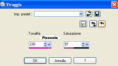 Regola>Tonalità e saturazione>Viraggio, con i settaggi precedenti.