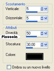 e cancellale:![]() ![]() Non dimenticare di aggiungere il tuo watermark. Apri il file con il testo "Schriftzug" e vai a Modifica>Copia. Torna al tuo lavoro e vai a Modifica>Incolla come nuovo livello. Posizionalo dove ti sembra meglio.Effetti>Effetti 3D>Sfalsa ombra, con i seguenti settaggi, colore nero: ![]() Livelli>Unisci>Unisci tutto, e salva in formato jpg. Ecco alcuni esempi della casualità dell'effetto. ![]() ![]() ![]() L'esempio senza bolle: ![]() ![]() Se hai problemi o dubbi, o trovi un link non funzionante, o anche soltanto per un saluto, scrivimi 20 Aprile 2008 |
