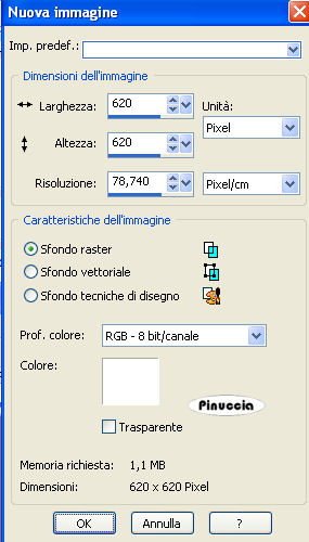 Apri una nuova immagine bianca 620 x 620 pixels.