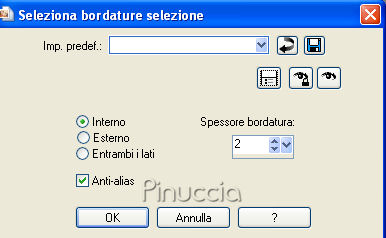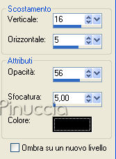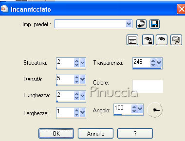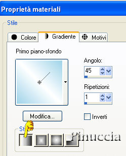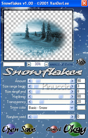 qui puoi trovare qualche risposta ai tuoi dubbi. Se l'argomento che ti interessa non è presente, ti prego di segnalarmelo. Questo tutorial è stato scritto con PSP X, ma può essere eseguito anche con le altre versioni di PSP. Occorrente: Il tube di una donna a scelta. Il resto del materiale qui Filtri: Simple - Quarter Corner qui VDL Adrenaline - Snowflakes qui Graphics Plus qui I tubes che ho usato per i miei esempi sono di Jet e Gini. Il materiale scrap usato in questo tutorial è di Scrappy Expression. Grazie Melissa. Nello zip trovate i suoi termini d'uso. Imposta il colore di primo piano con #9fd3e8, e il colore di sfondo con il bianco. Passa il colore di primo piano a Gradiente di primo piano/sfondo, con i seguenti settaggi: ![]() Apri una nuova immagine BIANCA 700 x 500 pixels. Effetti>Plugins>Simple - Quarter Corner, con i settaggi standard. ![]() Non preoccuparti se adesso l'immagine sarà bianconera. Attiva lo strumento Bacchetta magica ![]() ![]() e clicca sulle parte nera per selezionarla. ![]() Livelli>Nuovo livello raster. Riempi la selezione con il gradiente.Selezione>Modifica>Seleziona bordature selezione: ![]() Livelli>Nuovo livello raster. Riempi la selezione con il bianco.se trovi difficoltà a causa dello spazio ristretto della selezione, allargala usando lo zoom o la rotellina del mouseSelezione>Deseleziona. Attiva il livello Raster 1. Effetti>Effetti di trama>Incannicciato. ![]() Attiva il livello Raster 2. Livelli>Unisci>Unisci giù. Effetti>Effetti 3D>Sfalsa ombra: ![]() Livelli>Duplica. Immagine>Rifletti. Livelli>Unisci>Unisci giù. Livelli>Duplica. Immagine>Capovolgi. Attiva il livello di sfondo. Apri il tube mds1369whitexmas.psp, e vai a Modifica>Copia. Torna al tuo lavoro e vai a Modifica>Incolla come nuovo livello. Immagine>Ridimensiona, al 115%, tutti i livelli non selezionato, 2 volte. Effetti>effetti di bordo>Aumenta. Regola>saturazione e tonalità>Viraggio: ![]() Sposta questo livello in basso.![]() Apri charmribbons1lia.psp. Posizionati sul livello wishribbon. ![]() Modifica>Copia. Torna al tuo lavoro e vai a Modifica>Incolla come nuovo livello. Immagine>Ridimensiona, al 120%, tutti i livelli non selezionato. Regola>Messa a fuoco>Metti a fuoco. Sposta il nastro in alto, vedi il mio esempio per la posizione.Livelli>Duplica. Immagine>Rifletti. Attiva lo strumento Gomma e cancella e cancella la parte di nastro che copre l'occhiello.![]() Livelli>Unisci>Unisci giù. Apri il tube che hai deciso di usare e vai a Modifica>Copia. Torna al tuo lavoro e vai a Modifica>Incolla come nuovo livello. Effetti>Effetti 3D>sfalsa ombra: ![]() Attiva il livello superiore. Apri il tube kat-blue1-st-ac.psd, e vai a Modifica>copia. Torna al tuo lavoro e vai a Modifica>Incolla come nuovo livello. Sposta le stelle nell'angolo in basso a sinistra.Regola>Saturazione e tonalità>Viraggio, con i settaggi precedenti. Effetti>Effetti 3D>Sfalsa ombra: ![]() Attiva lo strumento Gomma e cancella le stelle rimaste fuori dall'angolo.![]() Livelli>Duplica. Immagine>Rifletti. Livelli>Unisci>Unisci giù. Livelli>Duplica. Immagine>Capovolgi. Livelli>Unisci>Unisci giù. Apri SE_LetItSnow_Tag.pspimage, e vai a Modifica>Copia. Torna al tuo lavoro e vai a Modifica>Incolla come nuovo livello. Regola>Saturazione e tonalità>Viraggio, con i settaggi precedenti. Immagine>Ridimensiona, al 45%, tutti i livelli non selezionato. Sposta la targhetta a sinistra, vicino al bordo.Attiva nuovamente charmribbons1lia.psp e posizionati sul livello charmstar: ![]() Modifica>copia. Torna al tuo lavoro e vai a Modifica>Incolla come nuovo livello. Posiziona il tube sulla targhetta.Apri SE_LetItSnow_Bow.pspimage, e vai a Modifica>Copia. Torna al tuo lavoro e vai a Modifica>Incolla come nuovo livello. Immagine>Ridimensiona, al 45%, tutti i livelli non selezionato. Regola>Saturazione e tonalità>Viraggio, con i settaggi precedenti. Immagine>Ruota per gradi>20 gradi a destra, tutti i livelli non selezionato. ![]() Effetti>Effetti 3D>Sfalsa ombra, con i settaggi precedenti. Aggiungi il tuo nome e/o il tuo watermark su un nuovo livello. Se vuoi animare la tag, salta il passaggio dei bordi e continua, in fondo al tutorial, dopo gli esempi. Immagine>Aggiungi bordatura, 1 pixel, simmetriche, con il colore di primo piano. Immagine>Aggiungi bordatura, 1 pixel, simmetriche, con il colore di sfondo. Immagine>Aggiungi bordatura, 1 pixel, simmetriche, con il colore di primo piano. Livelli>Unisci>Unisci tutto e salva in formato jpg. ![]() ![]() Per creare l'animazione. Attiva il livello superiore. Selezione>Seleziona tutto. Immagine>Dimensione tela - 704 x 504 pixels. Selezione>Inverti. Livelli>Nuovo livello raster. Riempi la selezione con il colore di primo piano.Selezione>Deseleziona. Effetti>Plugins>Graphics Plus - Cross Shadow, con i settaggi standard. ![]() Attiva il livello con il paesaggio, che dovrebbe essere il livello Raster 2: ![]() Livelli>Duplica, 2 volte. Chiudi i livelli duplicati e resta posizionato su Raster 2. Effetti>Plugins>VDL Adrenaline - Snowflakes, con i seguenti settaggi: ![]() Chiudi questo livello e attiva il livello della prima copia. Ripeti l'Effetto Snowflakes, con gli stessi settaggi, ma cambiando il valore di Random Seed a 100. ![]() Chiudi questo livello e visualizza e attiva il livello della seconda copia. Ripeti l'Effetto Snowflakes, portando Random Seed a 200. Posizionati sul livello di sfondo, apri il livello originale del paesaggio e chiudi i livelli delle due copie. ![]() Modifica>Copia Unione. Apri Animation Shop e vai a Modifica>Incolla>Incolla come nuova animazione. Ritorna in PSP. Chiudi il livello del paesaggio e rendi visibile il livello della prima copia. ![]() Modifica>Copia Unione. Di nuovo in Animation Shop e vai a Modifica>Incolla>Incolla dopo il fotogramma corrente. Ancora in PSP. Chiudi il livello della prima copia e rendi visibile il livello della seconda copia. ![]() Modifica>Copia unione. Ancora una volta in Animation Shop e vai a Modifica>Incolla>Incolla dopo il fotogramma co