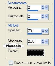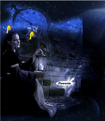 qui puoi trovare qualche risposta ai tuoi dubbi. Se l'argomento che ti interessa non è presente, ti prego di segnalarmelo. Questo tutorial è stato scritto con PSP X2, ma può essere eseguito anche con le altre versioni di PSP. Per tradurlo, ho usato PSP X. ©Biene - tutti i diritti riservati. Il © della traduzione è mio. Occorrente: A scelta tre immagini a tema e un orologio. Per il mio esempio ho usato tubes ©Venja Art. Trovi il bel sito di Sandra Dahl http://www.venja-art.de/ qui Il lavoro di Sandra non può essere usato senza il permesso dell'autrice. Il tube dell'orologio e di http://www.sabis-tuben.de/Sabi Il resto del materiale qui Lo sfondo e l'angolo sono ©Biene Un ringraziamento ai creatori di tubes dei vari gruppi cui appartengo. Il watermark di ognuno è inserito nei tubes. Per favore, rispetta il lavoro degli autori: non cambiare il nome del file e non rimuovere il watermark. Il © appartiene agli artisti originali. ![]() Metti il motivo nella cartella Motivi e apri il resto del materiale in PSP. Imposta il colore di primo piano con #1c2f50, e il colore di sfondo con il nero. Apri l'immagine di sfondo "background_die_letzte_griegerin.jpg"> Duplicala usando la combinazione di tasti maiuscola+D e chiudi l'originale. La copia sarà la base del tuo lavoro. Livelli>Nuovo livello raster. Riempi con il colore di primo piano.Abbassa l'opacità di questo livello al 39%. Apri Copy_by_Venja_art_Memories.psp. Attiva lo strumento Selezione , rettangolo,e seleziona la parte degli orologi con il velo. ![]() Modifica>Copia. Torna al tuo lavoro e vai a Modifica>Incolla come nuovo livello. Immagine>Rifletti. Sposta l'immagine nell'angolo in alto a sinistra.Cambia la modalità di miscelatura di questo livello in Indebolisci. Apri Copy_by_Venja_art_Outer_Space.psp e vai a Modifica>copia. Torna al tuo lavoro e vai a Modifica>Incolla come nuovo livello. Sposta il tube un po' più a destra.Abbassa l'opacità di questo livello al 75%. Apri Copy_by_Venja_Art_Die_Magie_Der_Hexen_I.psp (la donna a destra), e vai a Modifica>Copia. Torna al tuo lavoro e vai a Modifica>Incolla come nuovo livello. Immagine>Rifletti. Regola>Tonalità e Saturazione>Viraggio. ![]() Immagine>Ridimensiona, all'85%, tutti i livelli non selezionato. Regola>Messa a fuoco>Metti a fuoco. Cambia la modalità di miscelatura di questo livello in Luminanza (esistente). Sposta il tube un po' più in basso a destra:Attiva lo strumento Gomma ,dimensione 100, opacità 25, e cancella l'immagine della donna a sinistra. ![]() Dovresti avere questo. ![]() Apri Copy_by_Venja_art_Luthien_Ii.psp (la donna a sinistra) e vai a Modifica>Copia. Torna al tuo lavoro e vai a Modifica>Incolla come nuovo livello. Immagine>Rifletti. Immagine>Ridimensiona, una volta all'85% e una volta al 90%, tutti i livelli non selezionato. Regola>Messa a fuoco>Metto a fuoco. Sposta il tube tutto in basso e a sinistra.Attiva lo strumento Gomma , dimensione 80, opacità 10-15 circa,e cancella l'alone nero intorno alla testa della donna. ![]() Dovresti avere questo. ![]() Apri Copy_by_Venja_Art_Die_Letzte_Kriegerin.psp (la donna al centro), e vai a Modifica>Copia. Torna al tuo lavoro e vai a Modifica>Incolla come nuovo livello. Immagine>Ridimensiona, al 90%, tutti i livelli non selezionato. Regola>Messa a fuoco>Metti a fuoco. Sposta il tube un po' più in alto.Livelli>Unisci>Unisci tutto. Duplica l'immagine usando la combinazione maiuscola+D e metti da parte la copia. Continua sull'originale. Livelli>Duplica. Regola>Sfocatura>Sfocatura gaussiana - raggio 10. ![]() Livelli>Unisci>Unisci giù. Livelli>Nuovo livello raster. Selezione>Seleziona tutto. Selezione>Modifica>Contrai - 1 pixel. Selezione>Inverti. Passa il colore di primo piano a Motivi e seleziona il motivo argento Muster-silber. ![]() Riempi la selezione con il motivo argento.Selezione>Deseleziona. Effetti>Effetti 3D>Sfalsa ombra, con il colore nero. ![]() Lascia in attesa questa immagine e attiva la copia che hai messo da parte prima. *** Livelli>Nuovo livello raster. Selezione>Seleziona tutto. Selezione>Modifica>Contrai - 1 pixel. Selezione>Inverti. Riempi la selezione con il motivo argento.Selezione>Deseleziona. Livelli>Unisci>Unisci tutto. Modifica>Copia. *** Attiva il lavoro che hai lasciato in attesa (con la sfocatura gaussiana), e vai a Modifica>Incolla come nuovo livello. Immagine>Ridimensiona, al 90%, tutti i livelli non selezionato. Effetti>Effetti 3D>Sfalsa ombra, con il colore nero. ![]() Ripeti l'Effetto Sfalsa ombra, cambiando verticale e orizzontale con -2. ![]() Apri silvercorner_biene_mademe.pspimage" e vai a Modifica>Copia. Torna al tuo lavoro e vai a Modifica>Incolla come nuovo livello. Premi il tasto D sulla tastiera per "ingabbiare" l'angolo e poterlo facilmente spostare, e posizionalo in alto a sinistra. ![]() Livelli>Duplica. Immagine>Rifletti. Livelli>Unisci>Unisci giù. Effetti>Effetti 3D>Sfalsa ombra, con il colore nero. ![]() Livelli>Duplica. Immagine>Capovolgi. Livelli>Unisci>Unisci giù. Imposta il colore di primo piano con il motivo argento, e il colore di sfondo con un colore più chiaro di quello impostato all'inizio come colore di primo piano. Attiva lo strumento Testo , e scegli un font.Per il mio esempio ho usato il font Gracey's Curse, pennellata 1, direzione verticale. Scrivi il tuo testo. Oggetti>Allinea>Centra orizz. nella tela. Posiziona correttamente il testo. Selezione>Da oggetto vettoriale. Livelli>Converti in livello raster. Selezione>Modifica>Contrai - 1 pixel. Modifica>Copia. Livelli>Nuovo livello raster. Modifica>Incolla nella selezione. Attiva il livello sottostante e premi sulla tastiera il tasto CANC. Selezione>Deseleziona. Attiva nuovamente il livello superiore, e abbassa l'opacità di questo livello al 70%. Livelli>Unisci>Unsici giù. Effetti>Effetti 3D>Sfalsa ombra, con il colore nero. ![]() Aggiungi il tuo nome e/o il tuo watermark, senza dimenticare eventuali copyright delle immagini usate. Livelli>Unisci>Unisci tutto e salva in formato jpg. Se hai problemi