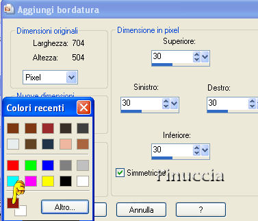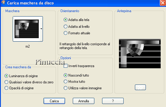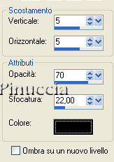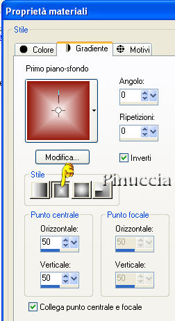 qui puoi trovare qualche risposta ai tuoi dubbi. Se l'argomento che ti interessa non è presente, ti prego di segnalarmelo. Questo tutorial è stato scritto con PSP X, ma può essere eseguito anche con le altre versioni di PSP. Occorrente: Materiale qui Metti la maschera nella cartella Maschere. Apri il motivo Gold Foil e minimizzalo nella tua area di lavoro. Lo troverai nella lista di Motivi disponibili quando ti servirà. Filtri: Bordermania qui Screenwork qui Greg's Factory Output II qui Imposta il colore di primo piano con #94160a, e il colore di sfondo con il bianco. Passa il colore di primo piano a Gradiente di primo piano/sfondo, con i seguenti settaggi: ![]() Apri una nuova immagine trasparente 700 x 500 pixels, e riempila con il gradiente.Livelli>Nuovo livello raster. Riempi il nuovo livello con il colore di primo piano.Livelli>Carica/Salva maschera>Carica maschera da disco. Cerca e carica la maschera m2: ![]() Livelli>Unisci>Unisci gruppo. Apri il tube Hanne-flower1- Okt 2007.psp, e vai a Modifica>copia. Torna al tuo lavoro e vai a Modifica>Incolla come nuovo livello. Immagine>Ridimensiona, al 90%, tutti i livelli non selezionato. Immagine>Rifletti. Sposta il fiore a sinistra.Effetti>Effetti 3D>Sfalsa ombra: ![]() Attiva il tube SS_2041.psp, e vai a Modifica>Copia. Torna al tuo lavoro e vai a Modifica>Incolla come nuovo livello. Sposta il tube a destra.Livelli>Duplica. Attiva il livello inferiore (il tube originale). Effetti>Effetti di distorsione>Vento: ![]() Abbassa l'opacità di questo livello al 65%. Posizionati nuovamente sul livello superiore e vai a Livelli>Unisci>Unisci tutto. Livelli>Nuovo livello raster. Selezione>Seleziona tutto. Immagine>Aggiungi bordatura, 2 pixels, simmetriche, con il colore bianco. Selezione>Inverti. Passa il colore di primo piano a Motivi. Cerca e seleziona il motivo Gold Foil. ![]() Riempi la selezione con il motivo oro.Effetti>Plugins>Bordermania - Frame #2. ![]() Selezione>Seleziona tutto. Selezione>Carica/Salva selezione>Carica selezione SU canale alfa; assegna un nome alla selezione, puoi anche lasciare quello che trovi: Selezione #1, e clicca Salva: ![]() Mantieni selezionato. Immagine>Aggiungi bordatura, 30 pixels, simmetriche, con il colore di primo piano. clicca con il tasto destro del mouse sulla finestra del colore e troverai in basso a sinistra i colori impostati nella paletta dei materiali. Clicca sulla paletta del colore di primo piano e avrai il bordo con quel colore. ![]() Selezione>Inverti. Effetti>Plugins>Greg's Factory II - Pools Shadow, con i settaggi standard. ![]() Effetti>Plugins>Screenworks - Lace Screen. Selezione>Seleziona tutto. Immagine>Aggiungi bordatura, 2 pixels, simmetriche, con il colore bianco. Selezione>Inverti. Riempi la selezione con il motivo oro.Effetti>Plugins>Bordermania - Frame #2, con i settaggi precedenti. Selezione>Carica/Salva selezione>Carica selezione da canale alfa. La selezione #1 che hai salvato prima è già presente, devi soltanto cliccare Carica. ![]() Selezione>Inverti. Effetti>Effetti 3D>Sfalsa ombra: ![]() Ripeti l'Effetto Sfalsa ombra, ma cambiando verticale e orizzontale a -3. Selezione>Deseleziona. Livelli>Unisci>Unisci tutto. Immagine>Ruota a destra. se stai usando PSP 9: Immagine>Ruota>90 gradi in senso orario. Attiva lo strumento Testo , e scegli un bel font.Io ho usato il font Ancestory, dimensione 48 pixels, crea come vettore. per il testo in italiano il font Boulevard Scrivi il tuo testo. Livelli>Converti in livello raster. Effetti>Effetti 3D>Sfalsa ombra: ![]() Immagine>Ruota a sinistra. se stai usando PSP 9: Immagine>Ruota>90 gradi in senso antiorario. Aggiungi il tuo nome e/o il tuo watermark. Livelli>Unisci>Unisci tutto e salva in formato jpg. ![]() ![]() Se hai problemi o dubbi, o trovi un link non funzionante, o anche soltanto per un saluto, scrivimi. 29 Ottobre 2007 |