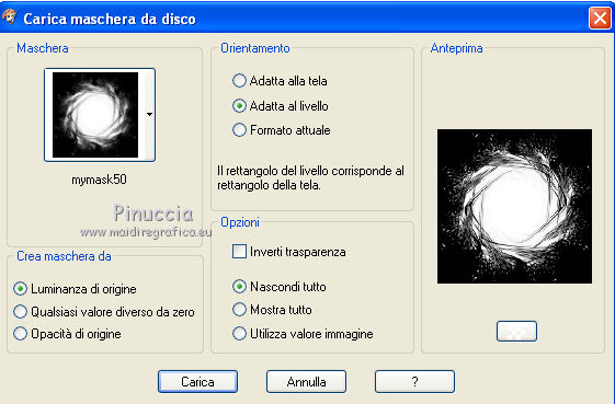 Cerca e carica la maschera mymask50, con i seguenti settaggi.