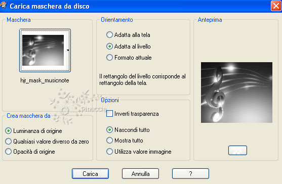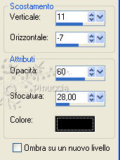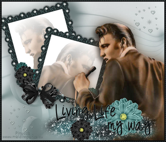 qui puoi trovare qualche risposta ai tuoi dubbi. Se l'argomento che ti interessa non è presente, ti prego di segnalarmelo. Questo tutorial è stato scritto con PSP X2, ma può essere eseguito anche con le altre versioni di PSP. Per tradurlo, ho usato PSP X. ©Biene - tutti i diritti riservati. Il © della traduzione è mio. Occorrente: Un tube a scelta. Il resto del materiale qui Il tube usato per il mio esempio è di Patries Lo scrapkit usato - Living Life my way è di Muriel Il tube degli "Accents" è di Always VE Godies, e il cerchio di diamanti è ©Biene. Un ringraziamento ai creatori di tubes dei vari gruppi cui appartengo. Il watermark di ognuno è inserito nei tubes. Per favore, rispetta il lavoro degli autori: non cambiare il nome del file e non rimuovere il watermark. Il © appartiene agli artisti originali. Filtri: Graphics Plus - Cross Shadow qui Cybia - Screenworks qui Metti le maschere 20-20.bmp e hjr_mask_musicnote.jpg nella cartella Maschere. Imposta il colore di primo piano con #798b8b, e il colore di sfondo con il bianco. Apri una nuova immagine trasparente 700 x 600 pixels, e riempila con il colore bianco di sfondo.Livelli>Nuovo livello raster. Riempi con il colore di primo piano.Effetti>Plugins>Graphics Plus - Cross Shadow: ![]() Livelli>Carica/Salva maschera>Carica maschera da disco. Cerca e carica la maschera hjr_mask_musicnote.jpg": ![]() Livelli>Unisci>Unisci gruppo. Livelli>Duplica. Livelli>Unisci>Unisci giù. Dallo scrapkit - cartella "Elements" - apri frame-4.png e vai a Modifica>copia. Torna al tuo lavoro e vai a Modifica>Incolla come nuovo livello. Immagine>Ridimensiona, 1 volta all'80% e una volta all'85%, tutti i livelli non selezionato. Apri il tuo tube e vai a Modifica>copia. Torna al tuo lavoro e vai a Modifica>Incolla come nuovo livello. Immagine>Ridimensiona, se e quanto necessario (per il mio esempio ho ingrandito al 125%). Livelli>Carica/Salva maschera>Carica maschera da disco. Cerca e carica la maschera 20-20: ![]() Livelli>Unisci>Unisci giù. Livelli>Disponi>Sposta giù. Posiziona adeguatamente il tube nella cornice.Attiva lo strumento Selezione , rettangolo,e seleziona l'area interna della cornice. ![]() Selezione>inverti. Premi sulla tastiera il tasto CANC ![]() Selezione>Inverti. Livelli>Nuovo livello raster. Riempi la selezione con il colore bianco.Selezione>Deseleziona. Livelli>Disponi>Sposta giù. Attiva il livello superiore. Abbassa l'opacità di questo livello al 60%. Chiudi i due livelli inferiori e attiva uno degli altri livelli. ![]() Livelli>Unisci>Unisci visibile. Rimani posizionato sul livello Uniti e riapri i livelli inferiori. Immagine>Ruota per gradi - 15 gradi a sinistra. ![]() Regola>Messa a fuoco>Metti a fuoco. Apri diamondcircle_livinglife_biene.pspimage e vai a Modifica>Copia. Torna al tuo lavoro e vai a Modifica>Incolla come nuovo livello. Posiziona i diamantini intorno alla cornice, adattandoli ai fori esistenti.![]() Livelli>Unisci>Unisci giù. Livelli>Duplica. Immagine>Rifletti. Posiziona le due cornici come ti sempre meglio.Per orientarti guarda il mio esempio. Livelli>Unisci>Unisci giù. Livelli>Duplica. Attiva il livello sottostante. Regola>Sfocatura>Sfocatura gaussiana - raggio 25. ![]() Attiva nuovamente il livello superiore. Effetti>effetti 3D>sfalsa ombra, con i seguenti settaggi, colore nero. ![]() Dallo scrapkit - cartella Elements - apri Multi-Bow-1.png e vai a Modifica>Copia. Torna al tuo lavoro e vai a Modifica>Incolla come nuovo livello. Immagine>Ridimensiona, una volta al 40% e una volta all'85%, tutti i livelli non selezionato. Regola>Messa a fuoco>Metti a fuoco. Sposta il nastro sotto la cornice.Effetti>Effetti 3D>Sfalsa ombra, con i seguenti settaggi, colore nero. ![]() Apri aved-2007-tube700-accents.psp. Posizionati sul livello "green" e vai a Modifica>Copia. Torna al tuo lavoro e vai a Modifica>Incolla come nuovo livello. Attiva lo strumento Trasforma in destinazione ,imposta l'opacità all'85%. Passa il mouse sopra i cuoricini e questi prenderanno il colore di primo piano. ![]() Livelli>Duplica. Livelli>Unisci>Unisci giù. Posiziona il livello in alto, pressappoco come nel mio esempio.(alla fine, tuttavia, la posizione di questo livello dipenderà dal tube che hai scelto). Effetti>Effetti 3D>sfalsa ombra, con i seguenti settaggi, colore nero. ![]() Livelli>Duplica, e posiziona il livello come ti sembra meglio.Apri il tuo tube e vai a Modifica>Copia. Torna al tuo lavoro e vai a Modifica>Incolla come nuovo livello. Sposta il tube a destra.Livelli>Duplica. Regola>Sfocatura>Sfocatura gaussiana - raggio 25. Livelli>Disponi>Sposta giù. Attiva il livello superiore. Effetti>Effetti 3D>sfalsa ombra, con i seguenti settaggi, colore nero. ![]() Dallo scrapkit - cartella Elements - apri blank-wordart-template.png e vai a Modifica>Copia. Torna al tuo lavoro e vai a Modifica>Incolla come nuovo livello. Immagine>Ridimensiona, all'80%, tutti i livelli non selezionato. Spostalo in basso a destra.Attiva lo strumento Testo , e scegli un font.Per il mio testo ho usato il font Digs My Hart, dimensione 48, pennellata 1 - antialias spiana. imposta il colore nero come colore di sfondo. ![]() Scrivi il testo. Se vuoi seguire il mio esempio, scrivi Living life e posiziona il testo dove preferisci. Livelli>Converti in livello raster. Scrivi "my way" e posizionalo dove ti sembra meglio. Livelli>Converti in livello raster. Livelli>Unisci>Unisci giù. Effetti>Effetti 3D>sfalsa ombra, con i seguenti settaggi, colore nero. ![]() Livelli>Nuovo livello raster. Riempi il livello con il colore di sfondo.Selezione>Seleziona tutto. Selezione>Modifica>Contrai - 7 pixels. Premi sulla tastiera il tasto CANC. Livelli>Nuovo livello raster. Selezione>Seleziona tutto. Selezione>Modifica>Contrai - 2 pixels. Riempi la selezione con il colore di primo piano.Selezione>Modifica>Contrai - 2 pixels. Premi sulla tastiera il tasto CANC. Selezione>Deseleziona. Effetti>Plugins>Cybia - Screenworks - Chain Link. ![]() Aggiungi eventuali copyright dei tuoi tu