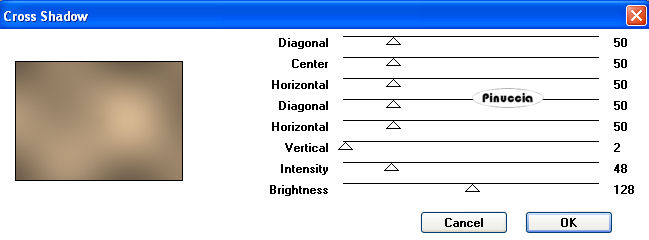 Effetti>Plugins>Graphics Plus - Cross Shadow, con i seguenti settaggi: