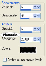 Effetti>effetti 3D>sfalsa ombra, con i seguenti settaggi colore nero.