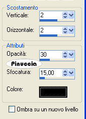 Effetti>Effetti 3D>Sfalsa ombra, con i seguenti settaggi, colore nero.