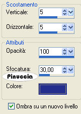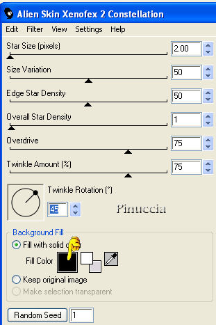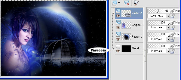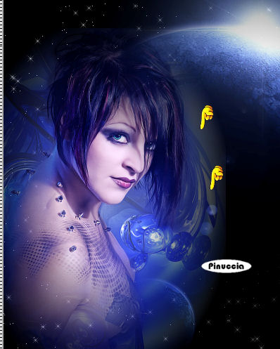 qui puoi trovare qualche risposta ai tuoi dubbi. Se l'argomento che ti interessa non è presente, ti prego di segnalarmelo. Questo tutorial è stato scritto con PSP X2, ma può essere eseguito anche con le altre versioni di PSP. Per tradurlo, ho usato PSP X. ©Biene - tutti i diritti riservati. Il © della traduzione è mio. Occorrente: Un tube galattico e l'immagine di una donna. Il resto del materiale qui Il tube galattico che ho usato è di Sabi, ©Venja-Art e anche l'immagine della donna è ©Venja-Art. Trovi il bel sito di Venja http://www.venja-art.de/" qui Il tube di Sabi's lo trovi http://www.sabis-tuben.de/"qui Ho usato anche un tube spaziale ©W.Hellebrandt.de. Non conosco invece l'origine del tube Sneugle Bubbles.psp. Se mi sarà cortesemente comunicato, provvederò ad aggiungerne il credito. Un ringraziamento ai creatori di tubes dei vari gruppi cui appartengo. Il watermark di ognuno è inserito nei tubes. Per favore, rispetta il lavoro degli autori: non cambiare il nome del file e non rimuovere il watermark. Il © appartiene agli artisti originali. Filtri: Graphics Plus - Cross Shadow qui Alien Skin Xenofex 2 - Constellation qui ![]() Apri una nuova immagine nera 700 x 500 pixels. ![]() Effetti>Plugins>alien Skin Xenofex 2 - Constellation: ![]() Apri il tuo tube galattico (Outer Space) e vai a Modifica>Copia. Torna al tuo lavoro e vai a Modifica>Incolla come nuovo livello. Apri l'immagine della donna (Bluetec X). Immagine>Ridimensiona, se e quanto necessario (la mia immagine è ridimensionata al 63%). Modifica>Copia. Torna al tuo lavoro e vai a Modifica>Incolla come nuovo livello. Immagine>Rifletti. Livelli>Carica/Salva maschera>Carica maschera da disco. Cerca e carica la maschera 20-20.bmp. ![]() Livelli>Unisci>Unisci gruppo. Sposta l'immagine a sinistra.A destra dell'immagine, puoi vedere le tracce del bordo scuro della maschera. ![]() Attiva lo strumento Gomma , dimensione 70, opacità intorno al 14%,e cancella, con cautela, queste tracce. Apri ML-hellebrandt.de (4).psp e vai a Modifica>Copia. Torna al tuo lavoro e vai a Modifica>Incolla come nuovo livello. Immagine>Ridimensiona, al 75%, tutti i livelli non selezionato. Sposta l'immagine in basso a destra.Cambia la modalità di miscelatura di questo livello in Luce netta, e abbassa l'opacità al 49%. ![]() Apri sneugle-bubbles.psp e vai a Modifica>Copia. Torna al tuo lavoro e vai a Modifica>Incolla come nuovo livello. ![]() Imposta il colore di primo piano con il nero, e il colore di sfondo con #293186. Attiva lo strumento Testo e scegli un font.Per il mio esempio ho usato il font Chlorinut, dimensione 72, crea come vettore. ![]() Scrivi il tuo testo. Selezione>Da oggetto vettoriale. Selezione>Modifica>Contrai - 1 pixel. Livelli>Converti in livello raster. Effetti>Plugins>Graphics Plus - Cross Shadow: ![]() Selezione>Deseleziona. Sposta il testo in basso a destra. Effetti>Effetti 3D>Sfalsa ombra, con i seguenti settaggi, colore #242f8d, ombra su nuovo livello selezionato. ![]() Attiva il livello superiore. Effetti>Effetti 3D>Sfalsa ombra, con i seguenti settaggi, colore nero. ![]() Attiva il livello Gruppo-Raster 2 (il livello della donna). Livelli>Disponi>Porta in alto. Aggiungi il tuo nome e/o il tuo watermark, senza dimenticare eventuali copyright delle tue immagini. Livelli>Nuovo livello raster. Selezione>Seleziona tutto. Selezione>Modifica>Contrai - 2 pixels. Selezione>Inverti. Riempi la selezione con il colore #293186.Selezione>Deseleziona. Livelli>Unisci>Unisci tutto e salva in formato jpg. Se hai problemi o dubbi, o trovi un link non funzionante, o anche soltanto per un saluto, scrivimi.