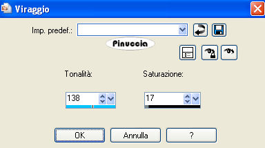 Regola>Tonalità e saturazione>Viraggio, con i settaggi precedenti.