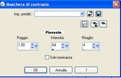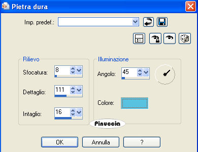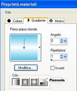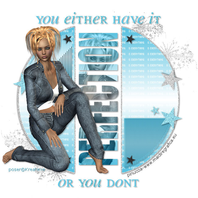 qui puoi trovare qualche risposta ai tuoi dubbi. Se l'argomento che ti interessa non è presente, ti prego di segnalarmelo. Questo tutorial è stato scritto con PSP X2, ma può essere eseguito anche con le altre versioni di PSP. Per tradurlo, ho usato PSP X. ©Biene - tutti i diritti riservati. Il © della traduzione è mio. Occorrente: Un tube a scelta. Il template 1 di Tamie che trovi http://addictivetemplates.blogspot.com/?zx=a7d4d38ebde462d4 qui , sotto 5 Novembre 2009, Templates 1-5. Il resto del materiale qui Per il mio esempio ho usato un poser http://posertuben.kreahexe.de/ ©Kreahexe Un ringraziamento ai creatori di tubes dei vari gruppi cui appartengo. Il watermark di ognuno è inserito nei tubes. Per favore, rispetta il lavoro degli autori: non cambiare il nome del file e non rimuovere il watermark. Il © appartiene agli artisti originali. Filtri: Tramages - Tow the Line qui ![]() Scegli un colore dal tuo tube e impostalo come colore di primo piano, il mio #5ac2e1. Imposta il colore di sfondo con il bianco. Apri il Template. Duplicalo usando la combinazione di tasti maiuscola+D e chiudi l'originale. La copia sarà la base del tuo lavoro. Immagine>Ridimensiona, all'85%, tutti i livelli selezionato. Attiva il livello "Background 1". Immagine>Dimensione tela - 650 x 650, e clicca sul quadretto al centro per distribuire equamente lo spazio in più. ![]() Attiva il livello "glittered half circle". Effetti>Effetti 3D>sfalsa ombra, con il colore nero. ![]() Attiva il livello "glittered half circle2". Effetti>Effetti 3D>Sfalsa ombra, con il colore nero. ![]() Attiva il livello "small half circle". Effetti>Plugins>Tramages - Tow the Line. ![]() Effetti>Effetti 3D>Sfalsa ombra. ![]() Attiva il livello "small half circle2". Selezione>Seleziona tutto. Selezione>Mobile. Selezione>Immobilizza. Livelli>Nuovo livello raster. Riempi la selezione con il colore di primo piano.Selezione>Deseleziona. Effetti>Effetti di trama>Pietra dura, con il tuo colore di primo piano: ![]() Abbassa l'opacità di questo livello al 67%. Effetti>Effetti 3D>Sfalsa ombra, con il colore nero. ![]() Attiva il livello "Perfection". Apri il tuo tube, o una parte di questo, e vai a Modifica>copia. Torna al tuo lavoro e vai a Modifica>Incolla come nuovo livello. Immagine>Rifletti. Abbassa l'opacità del livello intorno al 45%, in modo da poter vedere meglio le lettere del testo. Posiziona correttamente il tube sulle lettere.Attiva nuovamente il livello "perfection". Selezione>Seleziona tutto. Selezione>Mobile. Selezione>Immobilizza. Livelli>Nuovo livello raster. Passa il colore di primo piano a Gradiente. ![]() Riempi con il gradiente.Fai questo perchè il livello originale del testo è molto irregolare e frastagliato. Selezione>Inverti. Attiva il livello soprastante del tube. Premi sulla tastiera il tasto CANC. Selezione>Deseleziona. Cambia la modalità di miscelatura di questo livello in Luminanza (Esistente), e abbassa l'opacità al 66%. Livelli>Duplica. Regola>Sfocatura>Sfocatura gaussiana - raggio 3. Cambia la modalità di miscelatura di questo livello in Luce diffusa, e abbassa l'opacità al 60%. Attiva il livello sottostante. Effetti>Effetti 3D>sfalsa ombra. ![]() Adesso puoi eliminare il livello "perfection". Attiva il livello "stars". Regola>Aggiungi/Rimuovi disturbo>Aggiungi disturbo: ![]() Effetti>Effetti 3D>Sfalsa ombra, con il colore nero. ![]() Attiva lo strumento Selezione , rettangolo, sfumatura 0,e seleziona la stella a destra. Selezione>Innalza selezione a livello. Selezione>Deseleziona. Immagine>Capovolgi. Regola>Tonalità e saturazione>Viraggio. ![]() Posiziona correttamente la stella a destra.Attiva il livello "small stars". Regola>Aggiungi/Rimuovi disturbo>Aggiungi disturbo, con i settaggi precedenti. Regola>Messa a fuoco>Metti a fuoco. Effetti>Effetti 3D>Sfalsa ombra, con il colore nero. ![]() Attiva nuovamente lo strumento Selezione , rettangolo, modalità Aggiungi,e seleziona le due stelle bianche. ![]() Regola>Luminosità e contrasto>Luminosità e contrasto: ![]() Ripeti ancora 3 volte. Regola>Messa a fuoco>Metti a fuoco. Selezione>Innalza selezione a livello. Selezione>Deseleziona. Immagine>Rifletti. ![]() Se necessario, puoi spostare il testo "wordart2" un po' più in alto. Attiva nuovamente il livello "background1". Apri il glitter di Biene e vai a Modifica>Copia. Torna al tuo lavoro e vai a Modifica>Incolla come nuovo livello. Per spostarlo più facilmente, attiva lo strumento Deformazione , (tasto D sulla tastiera).![]() Se vuoi, puoi aggiungere altre stelle o elementi decorativi alla tua immagine. Attiva il livello "wordart". Regola>Messa a fuoco>Maschera di constrasto. ![]() Effetti>Effetti 3D>Sfalsa ombra, con il colore nero. ![]() Attiva il livello "wordart2". Regola>Messa a fuoco>Maschera di contrasto, con i settaggi precedenti. Effetti>Effetti 3D>Sfalsa ombra, con il colore nero. ![]() Attiva il livello superiore. Apri il tuo tube e vai a Modifica>Copia. Torna al tuo lavoro e vai a Modifica>Incolla come nuovo livello. Sposta il tube a sinistra.Effetti>Effetti 3D>Sfalsa ombra, con i settaggi precedenti. Aggiungi il tuo nome e/o il tuo watermark, senza dimenticare eventuali copyright delle immagini usate. Livelli>Unisci>Unisci tutto e salva in formato jpg. Se vuoi lo sfondo bianco dietro il template, prima di salvare, elimina il livello della maschera. ![]() Se hai problemi o dubbi, o trovi un link non funzionante, o anche soltanto per un saluto, scrivimi.