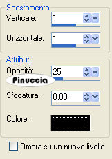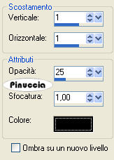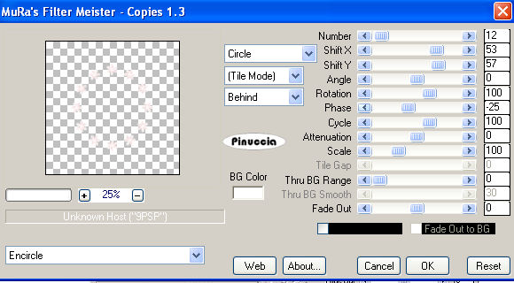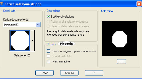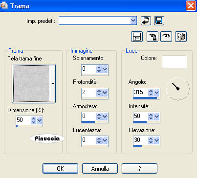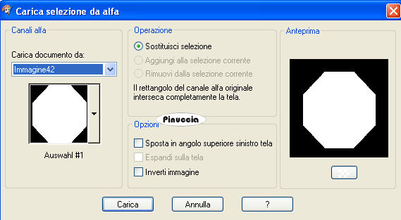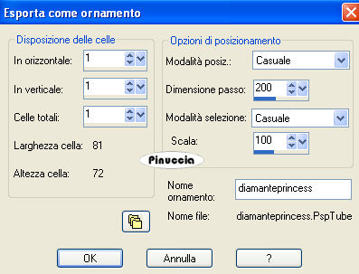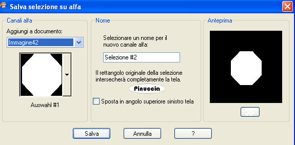 qui puoi trovare qualche risposta ai tuoi dubbi. Se l'argomento che ti interessa non è presente, ti prego di segnalarmelo. Questo tutorial è stato scritto con PSP X2, ma può essere eseguito anche con le altre versioni di PSP. Per tradurlo, l'ho eseguito con PSP X. Occorrente: Un tube a scelta. Il resto del materiale qui Il materiale scrap che ho usato è di Ink Stained (BC Awareness kit), e A-Dozi's. I tubes usati per gli esempi sono di Angie e Misssilly. Rispetta il lavoro degli autori e mantieni inalterati i tubes. Filtro: Mura's Meister - Copies qui Imposta il colore di primo piano con #f9b4d1, e il colore di sfondo con il bianco. Apri template_princess. pspsimage. Questa immagine, che sarà la base del tuo lavoro, non è vuota, ma contiene una selezione salvata su canale alfa. Apri Doodle Floral2-psp. Nella paletta dei livelli clicca sull'icona del lucchetto per bloccare la trasparenza del livello. ![]() Riempi lo spazio della decorazione con il colore di primo piano.![]() Immagine>Ridimensiona, al 60%, tutti i livelli non selezionato. Modifica>Copia. Torna al tuo lavoro e vai a Modifica>Incolla come nuovo livello. Sposta la decorazione nell'angolo in alto a sinistra.![]() Livelli>Duplica. Immagine>Rifletti. Livelli>Unisci>Unisci giù. Livelli>Duplica. Immagine>Capovolgi. Livelli>Unisci>Unisci giù. Livelli>Nuovo livello raster. Selezione>Carica/Salva selezione>Carica selezione da canale alfa. La selezione Auswahl#1 è già presente. Devi soltanto cliccare Carica. ![]() Apri inkStained-BCawarenessPaper05.jpg, e vai a Modifica>Copia. non chiuderla, perchè ti servirà ancora. Torna al tuo lavoro e vai a Modifica>Incolla nella selezione. Livelli>Nuovo livello raster. Riempi la selezione con il colore di sfondo.Selezione>Modifica>Contrai - 3 pixels. Premi sulla tastiera il tasto CANC ![]() Livelli>Nuovo livello raster. Selezione>Modifica>Contrai - 30 pixels. Apri inkStained-BCawarenessPaper01.jpg, e vai a Modifica>Copia. Torna al tuo lavoro e vai a Modifica>Incolla nella selezione. Livelli>Nuovo livello raster. Riempi la selezione con il colore di sfondo.Selezione>Modifica>Contrai - 3 pxiels. Premi sulla tastiera il tasto CANC. Livelli>Nuovo livello raster. Selezione>Modifica>Contrai - 50 pixels. Riempi la selezione con il colore di sfondo.Selezione>Modifica>Contrai - 3 pixels. Premi sulla tastiera il tasto CANC. Riempi la selezione con il colore di primo piano.Selezione>Modifica>Contrai - 3 pixels. Premi sulla tastiera il tasto CANC. Livelli>Nuovo livello raster. Riempi la selezione con il colore di sfondo.Selezione>Carica/Salva selezione>Salva selezione su canale alfa. Lascia il nome assegnato di default Selezione #2 clicca Salva. ![]() Selezione>Deseleziona. Attiva il livello Raster 3 (il livello della prima cornice bianca). Effetti>Effetti di trama>Trama - seleziona Tela trama fine, con i seguenti settaggi. ![]() Effetti>Effetti 3D>Sfalsa ombra, con i seguenti settaggi, colore nero. ![]() Attiva il livello Raster 5. Effetti>Effetti 3D>Sfalsa ombra, con i settaggi precedenti. Attiva il livello Raster 6. Effetti>Effetti 3D>Sfalsa ombra, con i settaggi precedenti. ![]() Attiva il livello superiore (Raster 7). Apri il tuo tube e vai a Modifica>Copia. non chiuderlo perchè ti servirà ancora. Torna al tuo lavoro e vai a Modifica>Incolla come nuovo livello. Immagine>Ridimensiona, intorno al 125%, a seconda del tube che hai scelto. Lo scopo è di ottenere un ingrandimento del viso o della parte di tube che vuoi rimanga al centro della cornice. Posiziona il tube con la parte del tube che deve rimanere.Selezione>Carica/Salva selezione>Carica selezione da canale alfa. cerca la selezione che hai salvato in precedenza: Selezione#2, e clicca Carica. ![]() Selezione>Inverti. Premi sulla tastiera il tasto CANC. Selezione>Deseleziona. Abbassa l'opacità di questo livello al 48%. Apri littlegirl_3flower_rainy.png. Immagine>Ridimensiona, al 15%, tutti i livelli non selezionato. Modifica>Copia. Torna al tuo lavoro e vai a Modifica>Incolla come nuovo livello. Effetti>Plugins>Mura's Meister - Copies ![]() Sistema i fiori nella cornice.![]() Effetti>Effetti 3D>Sfalsa ombra, con i seguenti settaggi, colore nero: ![]() Livelli>Nuovo livello raster. Apri diamond.PspTube. File>Esporta>Come ornamento. assegna un nome all'ornamento e clicca ok. ![]() fai attenzione: se hai già un altro ornamento con questo nome, il programma non vedrà il nuovo ornamento. Per questo, ho aggiunto al nome un altro testo identificativo. Attiva lo strumento Ornamento ![]() e seleziona l'ornamento che hai appena salvato, scala 20. Applica il diamante al centro dell'immagine. Effetti>Plugins>Mura's Meister - Copies, con i settaggi precedenti. Sistema i diamantini al centro dei fiori. ![]() Regola>Messa a fuoco>Metti a fuoco. Effetti>Effetti 3D>Sfalsa ombra, con i seguenti settaggi, colore nero. ![]() Livelli>Duplica. Immagine>Ruota per gradi - 15 gradi a sinistra: ![]() Regola>Messa a fuoco>Metti a fuoco, 2 volte. Attiva nuovamente inkStained-BCawarenessPaper05.jpg, e vai a Modifica>Copia. Torna al tuo lavoro e vai a Modifica>Incolla come nuovo livello. Sposta la carta completamente sul bordo superiore.Attiva lo strumento Selezione , rettangolo arrotondato,e traccia una selezione come nell'esempio. ![]() se vuoi modificare la selezione, vai a Selezione>Modifica selezione. La selezione diventerà rossa. Attivando lo strumento Puntatore ![]() potrai cambiarne le dimensioni a tuo piacimento. Selezione>Inverti. Premi sulla tastiera il tasto CANC. Selezione>Inverti. Livelli>Nuovo livello raster. Riempi la selezione con il colore di sfondo.Selezione>Modifica>Contrai - 2 pixels. Premi sulla tastiera il tasto CANC. Selezione>Deseleziona. Effetti>Effetti 3D>sfalsa ombra, con i seguenti settaggi, colore nero: ![]() Attiva lo strumento Testo , scegli un font,(io ho usato il font Three Sixty, dimensione 52, pennellata 1), e scrivi il tuo testo sulla striscia. Oggetti>Allinea>Centra orizz. nella tela. Livelli>Converti in livello raster. Sist