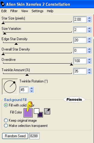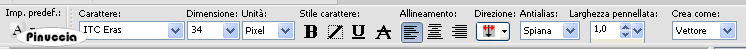 qui puoi trovare qualche risposta ai tuoi dubbi. Se l'argomento che ti interessa non è presente, ti prego di segnalarmelo. Questo tutorial è stato scritto con PSP X2, ma può essere eseguito anche con le altre versioni di PSP. Per tradurlo, ho usato PSP X. ©Biene - tutti i diritti riservati. Il © della traduzione è mio. Occorrente: Un tube a scelta. Il resto del materiale qui Per i miei esempi ho usato tubes di Mull e Pascale. Ho usato anche i seguenti Scrapkits: Ebony and Ivory di Sensualposers che trovi http://sensualposers.blogspot.com/search/label/Black qui BC GoodOrBad di Beacreations che trovi http://beacreations.blogspot.com/ qui La maschera Vix_Mask176.jpg è di http://www.freewebs.com/vixpsp/masks.htm Vix Un ringraziamento ai creatori di tubes dei vari gruppi cui appartengo. Il watermark di ognuno è inserito nei tubes. Per favore, rispetta il lavoro degli autori: non cambiare il nome del file e non rimuovere il watermark. Il © appartiene agli artisti originali. Filtri: Alien Skin Xenofex qui Ti servirà anche Animation Shop qui Metti la linea di stile Diamond1, che trovi qui nella cartella Linee di stile di PSP. Apri il file di sfondo di Biene background_punkygirl_biene.pspimage. Duplicalo usando sulla tastiera la combinazione di tasti maiuscola+D e chiudi l'originale. La copia sarà la base del tuo lavoro. Livelli>Nuovo livello raster. Scegli un colore scuro dal tuo tube e impostalo come colore di primo piano. Il mio #3a1d57. Come colore di sfondo imposta il colore bianco. Riempi il livello con il colore di primo piano.Livelli>Carica/Salva maschera>Carica maschera da disco. Cerca e carica la maschera Vix Mask176: ![]() Livelli>Unisci>Unisci gruppo. Attiva lo strumento Forme- ellisse , dimensione 5,e disegna un cerchio della dimensione circa di 400 x 400 pixels. mentre disegni il cerchio puoi controllare la dimensione nella barra inferiore. ![]() Se necessario, dopo aver tracciato il cerchio, puoi ingrandirlo o ridurlo usando la griglia vettoriale. Oggetti>Allinea>Centra nella tela. Livelli>Converti in livello raster. ![]() Attiva lo strumento Bacchetta magica , sfumatura e tolleranza 0,e clicca sulla parte bianca del cerchio per selezionarla. Livelli>Nuovo livello raster. Selezione>Modifica>Contrai - 2 pixels. Riempi la selezione con il colore di primo piano.Apri circlebackground_punkygirl_biene.pspimage e vai a Modifica>Copia. Torna al tuo lavoro e vai a Modifica>Incolla come nuovo livello. Attiva il livello sottostante. Selezione>Seleziona tutto. Selezione>Mobile. Selezione>Immobilizza. Selezione>Inverti. Attiva nuovamente il livello superiore. Premi sulla tastiera il tasto CANC ![]() Selezione>Deseleziona. Abbassa l'opacità di questo livello al 50%. Imposta il colore di primo piano con il bianco e chiudi il colore di sfondo. Attiva lo strumento Forme predefinite , cerchio, linea stile Diamond1, dimensione 5.![]() Disegna un cerchio. Se necessario, usa la griglia dello strumento per dimensionarlo all'interno del cerchio esistente. ![]() Oggetti>Allinea>Centra nella tela. Livelli>Duplica. Nascondi momentamente il livello vettore. Attiva il livello Copia del livello vettore. Livelli>Converti in livello raster, e rinomina questo livello "Bling". Livelli>Duplica - due volte. Attiva il livello Bling. Effetti>Plugins>Alien Skin - Xenofex - Constellation. imposta il colore con una tonalità chiara del tuo colore di primo piano. Per il mio esempio ho usato #a676d2. ![]() Effetti>Effetti 3D>Sfalsa ombra, con i seguenti settaggi, colore nero. ![]() Attiva il livello della prima copia di Bling. Ripeti l'Effetto Constellation, con gli stessi settaggi, ma cliccando una volta su Random Seed. Ripeti l'Effetto Sfalsa ombra, con i settaggi precedenti. Chiudi questo livello. Attiva il livello della seconda copia di Bling. Ripeti l'Effetto Constellation, cliccando su Random Seed. Ripeti l'Effetto Sfalsa ombra. Chiudi questo livello. Sempre rimanendo su questo livello, riapri il livello vettore che hai chiuso prima. Attiva lo strumento Testo , e scegli un font.Per il mio esempio ho usato ITC Eras Medium - dimensione 34 - pennellata 1 - scostamento 15 - crenatura 25. ![]() I settaggi in ogni caso, possono essere regolati a seconda del font che stai usando. Inverti i colori nella paletta dei materiali. Posiziona il mouse sul bordo del cerchio e quando vedi la A sottolineata da una mezza linea: ![]() clicca con il tasto sinistro del mouse per aprire la finestra del testo. Scrivi il tuo testo e ripetilo per coprire tutta l'area del cerchio. A seconda del font dovrai scriverlo più volte. Nel mio caso 6 volte. Livelli>Converti in livello raster. Effetti>Effetti 3D>Sfalsa ombra, con i seguenti settaggi, colore nero. ![]() Adesso puoi eliminare il livello Vettore. in alternativa a questo passaggio, puoi utilizzare il file di testo di Biene "schriftzug punkygirl biene". Dak kit Ebony and Ivory apri buckle2.png e vai a Modifica>Copia. Torna al tuo lavoro e vai a Modifica>Incolla come nuovo livello. Spostalo un po' più in basso a sinistra.Effetti>Effetti 3D>Sfalsa ombra, con i seguenti settaggi, colore nero. ![]() Dal kit BC Good or Bad apri wingedornament_bc_gob.png e vai a Modifica>Copia. Torna al tuo lavoro e vai a Modifica>Incolla come nuovo livello. Immagine>Ridimensiona, al 30%, tutti i livelli non selezionato. Regola>Messa a fuoco>Metti a fuoco. Spostalo sul nastro a sinistra.Livelli>Duplica. Immagine>Rifletti. Sistema il duplicato a destra.Per colorare il tube, imposta nuovamente il colore di primo piano con 3a1d57, e attiva lo strumento Trasforma in destinazione , dimensione 80, opacità 100,passa il mouse sul tube e questo assumerà il colore di primo piano. ![]() Dal kit Ebony and Ivory apri bow1.3.png e vai a Modifica>Copia. Torna al tuo lavoro e vai a Modifica>Incolla come nuovo livello. Immagine>Ridimensiona, al 20%, tutti i livelli non selezionato. Regola>Messa a fuoco>Metti a fuoco. Immagine>Ruota per gradi - 16 gradi a destra: ![]() Sposta il fiocco in alto a destra.Effetti>Effet