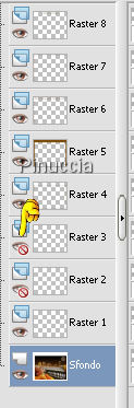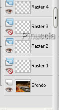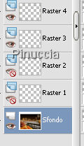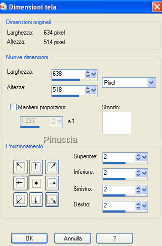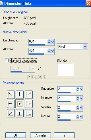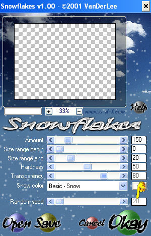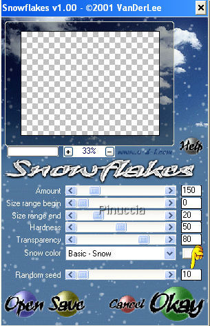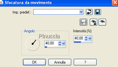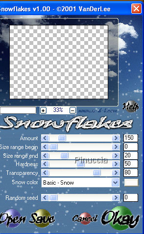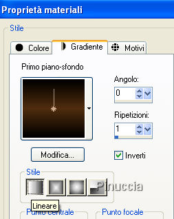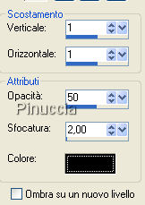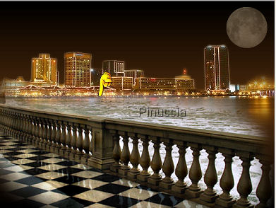 qui puoi trovare qualche risposta ai tuoi dubbi. Se l'argomento che ti interessa non è presente, ti prego di segnalarmelo. Questo tutorial è stato scritto con PSP X. Occorrente: Materiale qui Metti il pennello nella cartella dei Pennelli. Se vuoi aggiungere delle piccole luci all'immagine, metti l'ornamento Stern.tub nella cartella Ornamenti di PSP. Rispetta il copyright degli autori. Non cambiare il nome del file e non cancellare il livello del watermark. Filtri: Greg's Factory Output II qui VD Adrenaline - Snowflakes qui Imposta il colore di primo piano con #502d0f, e il colore di sfondo con il nero. Passa il colore di primo piano a Gradiente di primo piano/sfondo: ![]() Apri una nuova immagine trasparente 600 x 450 pixels. Apri Moon-005_molly.psp, e vai a Modifica>Copia. Torna al tuo lavoro e vai a Modifica>Incolla>Incolla come nuovo livello. Immagine>Ridimensiona, al 20%, tutti i livelli non selezionato. Sposta la luna in alto a destra.Abbassa l'opacità di questo livello al 44%. Apri Öffne GoldCity_MistedByGini_06-25-06.tub, e vai a Modifica>Copia. Torna al tuo lavoro e vai a Modifica>Incolla come nuovo livello. Sposta il tube al centro dell'immagine.Apri Misted_filly_ (1173) Scenary.psp, e vai a Modifica>Copia. Torna al tuo lavoro e vai a Modifica>Incolla come nuovo livello. Sposta il tube in basso, in modo che l'acqua si "mescoli" al tube superiore.![]() Apri TQ_rainywomen.psp. Immagine>Rifletti. Modifica>Copia. Torna al tuo lavoro e vai a Modifica>Incolla come nuovo livello. Immagine>Ridimensiona, al 70%, tutti i livelli non selezionato. Sposta il tube in basso a sinistra.Effetti>effetti 3D>Sfalsa ombra: ![]() Livelli>Unisci>Unisci tutto. Selezione>Seleziona tutto. Livelli>Nuovo livello raster. Effetti>Plugins>VDL Adrenaline - Snoflakes: ![]() Regola>Sfocatura>Sfocatura da movimento: ![]() Livelli>Nuovo livello raster. Ripeti l'Effetto Snowflakes, con gli stessi settaggi, cambiando soltanto il valore di Random Seed a 10. ![]() Regola>Sfocatura>Sfocatura da movimento, con i settaggi precedenti. Livelli>Nuovo livello raster. Ripeti l'Effetto Snowflakes, ma cambiando Random Seed a 20. ![]() Regola>Sfocatura>Sfocatura da movimento, con i settaggi precedenti. Nella paletta dei livelli chiudi questi tre livelli con il filtro Snowflakes. *** Quando sarà il momento dell'animazione, ricorda che questi tre livelli - Raster 1, Raster 2, Raster 3, sono i livelli con il filtro Snowflakes. Se vorrai aggiungere anche le luci, vedi sotto in fondo al tutorial.*** Immagine>Dimensione tela - 604 x 454 pixels. ![]() Selezione>Seleziona tutto. Selezione>modifica>Contrai, di 2 pixels. Selezione>inverti. Livelli>nuovo livello raster. Passa il colore di primo piano da Gradiente a colore, e riempi la selezione con un colore chiaro.Io ho usato #7a4d0e. Effetti>Plugins>Greg's Factory Output II - Pool Shadow, con i settaggi standard. ![]() Effetti>Effetti 3D>Smusso a incasso: ![]() Immagine>Dimensione tela - ![]() Immagine>Dimensione tela - ![]() Clicca con la bacchetta magica sul bordo bianco per selezionarlo.Livelli>Nuovo livello raster. Riempi la selezione con il colore #7a4d0e.Mantieni selezionato. Livelli>Nuovo livello raster. Attiva lo strumento Pennello ![]() Cerca e seleziona il pennello rainy6.pspbrush, e applicalo con il colore di primo piano #502d0f casualmente sul bordo. Selezione>Deseleziona. Immagine>Dimensione tela: ![]() Selezione>Seleziona tutto. Selezione>Modifica>Contrai, di 2 pixels, Selezione>Inverti. Livelli>Nuovo livello raster. Riempi il bordo con #7a4d0e.Effetti>Plugins>Greg's Factory Output II - Pool Shadow, con i settaggi standard. ![]() Effetti>Effetti 3D>Sfalsa ombra, con i settaggi precedenti. Selezione>Deseleziona. Attiva lo strumento Testo e scegli un font.Io ho usato il font Sandy TextHmk, dimensione 36, vettore, colore di sfondo impostato su un motivo oro. Scrivi un testo e posizionalo sul bordo superiore. Livelli>Converti in livello raster. Effetti>Effetti 3D>Sfalsa ombra, con i seguenti settaggi, colore nero: ![]() Ripeti l'Effetto Sfalsa ombra, ma cambiando verticale e orizzontale a -1. Aggiungi il tuo nome e/o il tuo watermark al tuo lavoro. Adesso dovrai unire i livelli per creare l'animazione. Rendi visibile il primo livello con l'Effetto Snowflakes. ![]() Modifica>Copia unione. Apri Animation Shop e vai a Modifica>Incolla>Incolla come nuova animazione. Torna in PSP. Chiudi il primo livello con l'Effetto Snowflakes, e rendi visibile il secondo. ![]() Modifica>Copia Unione. Di nuovo in Animation Shop: Modifica>Incolla>Incolla dopo il fotogramma corrente. Ancora in PSP. Chiudi il secondo livello e rendi visibile il terzo livello con l'Effetto Snowflakes. ![]() Modifica>Copia unione. Ancora in Animation Shop: Modifica>Incolla>Incolla dopo il fotogramma corrente. Per controllare il risultato clicca su Visualizza , e salva in formato gif.![]() Se vuoi aggiungere le piccole luci. Dopo aver chiuso i livelli con l'Effetto Snowflakes, posizionati sul livello superiore. Livelli>Nuovo livello raster. Attiva lo strumento Ornamento e seleziona Stern.tub, scala 20, e applica alcune piccole stelle sugli edifici dello sfondo, non tante, mi raccomando. Livelli>Nuovo livello raster. Applica altre piccole stelle con la stessa dimensione in altri punti dello sfondo. Livelli>Nuovo livello raster. Applica ancora altre piccole stesse in altri punti dello sfondo. Riprendi il tutorial. Quando arriverai al momento di unire i livelli per l'animazione, oltre a chiudere i livelli con l'effetto snowflakes, dovrai chiudere quelli con le stelle. Nell'esempio sotto, ho rinominato i livelli per semplificare la spiegazione: primo fotogramma: ![]() secondo fotogramma: ![]() terzo fotogramma: ![]() ![]() Se hai problemi o dubbi, o trovi un link non funzionante, o anche soltanto per un saluto, scrivimi. 2 Novembre 2007 |