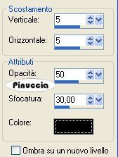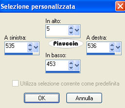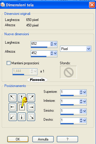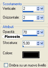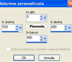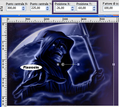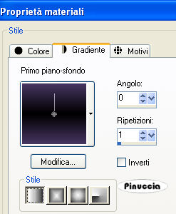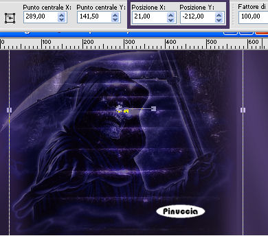 qui puoi trovare qualche risposta ai tuoi dubbi. Se l'argomento che ti interessa non è presente, ti prego di segnalarmelo. Questo tutorial è stato scritto con PSP X2, ma può essere eseguito anche con le altre versioni di PSP. Per tradurlo, l'ho eseguito con PSP X. Occorrente: Un tube a scelta. Il resto del materiale qui Ho usato un tube di CC Creatiations copyright ©Francisco Rivera, di Farouche e Jules. Rispetta il lavoro degli autori e mantieni inalterati i tubes. Metti il motivo Gold Foil.jpg nella cartella Motivi. Per i miei esempi ho usato tubes di Nimue La Fèe e Dragonblu. Filtri: Alien Skin Xenofex - Lightning qui Graphics Plus qui Apri una nuova immagine trasparente 600 x 450 pixels. Imposta il colore di primo piano con #463661, e il colore di sfondo con il nero (#000000). Riempi l'immagine trasparente con colore di primo piano.Effetti>Plugins>Graphics Plus - Cross Shadow, con i seguenti settaggi: ![]() Regola>Sfocatura>Sfocatura gaussiana - raggio 20. ![]() Apri darkscenic.pspimage e vai a Modifica>Copia. Torna al tuo lavoro e vai a Modifica>Incolla come nuovo livello. Immagine>Ridimensiona, al 119%, tutti i livelli non selezionato. Sposta il tube a sinistra.Abbassa l'opacità di questo livello al 50%. Regola>Messa a fuoco>Metti a fuoco. Apri Francisco_Rivera_LaMuerte.psp e vai a Modifica>copia. Torna al tuo lavoro e vai a Modifica>Incolla come nuovo livello. Spostalo a sinistra.La mia posizione: Pos.x: -26,00 Pos.y: -68,00 attivando lo strumento Puntatore nella barra superiore degli strumenti, potrai controllare la posizione:![]() Cambia la modalità di miscelatura di questo livello in Luce diffusa. Effetti>Effetti di bordo>Aumenta. Attiva il livello Raster 1. Immagine>Dimensione tela - 650 x 450 pixels: ![]() Selezione>Seleziona tutto. Premi sulla tastiera il tasto CANC ![]() Riempi la selezione con il colore di primo piano.Effetti>Plugins>Graphics Plus - Cross Shadow, con i settaggi precedenti. Selezione>Deseleziona. Attiva il livello Raster 2. Sposta il tube un po' più a destra.La mia posizione: Pos.x: 21,00 Pos.y: -212,00 ![]() Attiva il livello superiore. Livelli>Nuovo livello raster. Attiva lo strumento Selezione ![]() clicca sull'icona Selezione personalizzata ![]() e imposta i seguenti settaggi. ![]() Passa il colore di primo piano a Gradiente lineare: ![]() Riempi la selezione con il gradiente.Regola>Sfocatura>Sfocatura gaussiana - raggio 20. Selezione>Deseleziona. Abbassa l'opacità di questo livello al 70%, e rinomina il livello "Blitz". Livelli>Duplica. Effetti>Plugins>Alien Skin Xenofex - Lightning: ![]() Attiva il livello "Blitz". Selezione>Seleziona tutto. Selezione>Mobile. Selezione>Immobilizza. Selezione>Inverti. Attiva il livello Copia di Blitz. Premi sulla tastiera il tasto CANC ![]() Selezione>Deseleziona. Attiva lo strumento Testo e scegli un bel font.Per il mio esempio ho usato il font Namesake, con i seguenti settaggi: ![]() ![]() Passa il colore di primo piano a colore di sfondo, quindi passa il colore di primo piano a Motivi e seleziona il motivo oro Gold Foil. ![]() Prima scrivi "Scary". Livelli>Converti in livello raster. Poi scrivi "Night". Livelli>Converti in livello raster. Posiziona i due testi nella striscia a destra.Assicurati di essere posizionato sul livello superiore. Livelli>Unisci>Unisci giù. Effetti>Effetti 3D>Sfalsa ombra, con i seguenti settaggi, colore nero. ![]() Apri il tuo tube e vai a Modifica>copia. Ridimensiona il tube - se e quanto necessario. Posiziona il tube a destra, vedi il mio esempio come orientamento.Livelli>Duplica. Attiva il livello originale. Effetti>Effetti di distorsione>Vento - da destra - intensità 100. ![]() Regola>Sfocatura>Sfocatura gaussiana - raggio 20. ![]() Attiva il livello superiore. Effetti>Effetti 3D>sfalsa ombra, con i seguenti settaggi, colore nero. ![]() Livelli>Nuovo livello raster. Selezione>Seleziona tutto. Immagine>Dimensione tela - 652 x 452 pixels. ![]() Selezione>Inverti. Riempi la selezione con #463661.Effetti>Plugins>Graphics Plus - Cross Shadow, con i settaggi precedenti. Selezione>Seleziona tutto. Livelli>Nuovo livello raster. Immagine>Dimensione tela - 654 x 454 pixels. Selezione>Inverti. Riempi la selezione con il motivo oro.Livelli>Nuovo livello raster. Selezione>Seleziona tutto. Immagine>Dimensione tela - 660 x 460 pixels. Selezione>Inverti. Riempi la selezione con #463661.Effetti>Plugins>Graphics Plus - Cross Shadow, con i settaggi precedenti. Selezione>Deseleziona. Attiva il livello Copia di Blitz. Livelli>Nuovo livello raster. Selezione personalizzata ![]() ![]() Riempi la selezione con il motivo oro.Selezione>Deseleziona. Apri halloween 3~jules.psp e vai a Modifica>copia. Torna al tuo lavoro e vai a Modifica>Incolla come nuovo l ivello. Immagine>Rifletti. Immagine>Ridimensiona, al 70%, tutti i livelli non selezionato. Immagine>Ruota per gradi - 6 gradi a sinistra. Sposta la ragnatela nell'angolo in alto a sinistra.Ingrandisci l'immagine almeno al 500% usando la rotellina del mouse o attivando lo zoom ![]() Attiva lo strumento Bacchetta magica , tolleranza 17, sfumatura 0,e seleziona gli occhi del ragno, cliccando anche più volte se necessario. ![]() Modifica>Copia. Livelli>Nuovo livello raster. Modifica>Incolla nella selezione. Regola>Tonalità e saturazione>Viraggio: ![]() Selezione>Deseleziona. Cambia la modalità di miscelatura di questo livello in Moltiplica. Cambia la modalità di miscelatura del livello sottostante in Luminanza. Se hai usato il tube con il copyright ©Francisco Rivera, non dimenticare di aggiungerlo al tuo lavoro. Aggiungi il tuo nome e/o il tuo watermark. Livelli>Unisci>Unisci tutto e salva in formato jpg. ![]() ![]() Se hai problemi o dubbi, o trovi un link non funzionante, o anche soltanto per un saluto, scrivimi 29 Settembre 2008 |