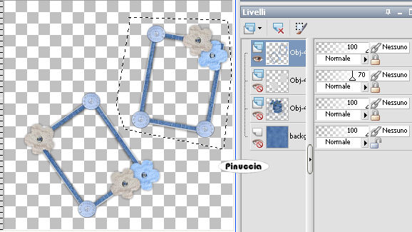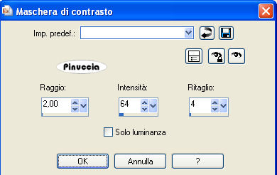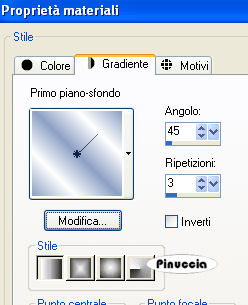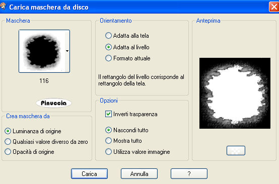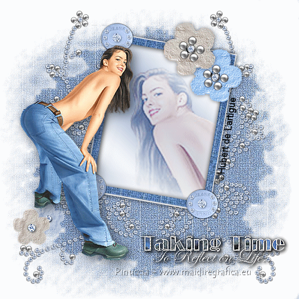 qui puoi trovare qualche risposta ai tuoi dubbi. Se l'argomento che ti interessa non è presente, ti prego di segnalarmelo. Questo tutorial è stato scritto con PSP X2, ma può essere eseguito anche con le altre versioni di PSP. Per tradurlo, ho usato PSP X. ©Biene - tutti i diritti riservati. Il © della traduzione è mio. Occorrente: A scelta il tube di una donna. Il resto del materiale qui Il tube usato per il mio esempio è un tube "Sirenssecrets". Lo scrap usato per questo tutorial è il kit CS_RipMyJeans_Kit di Cordelia che puoi trovare qui Un ringraziamento ai creatori di tubes dei vari gruppi cui appartengo. Il watermark di ognuno è inserito nei tubes. Per favore, rispetta il lavoro degli autori: non cambiare il nome del file e non rimuovere il watermark. Il © appartiene agli artisti originali. ![]() Metti la maschera 116.jpg nella cartella Maschere. Apri una nuova immagine bianca 600 x 600 pixels. Imposta il colore di primo piano con #8ca0c4, e il colore di sfondo con il bianco. Livelli>Nuovo livello raster. Selezione>Seleziona tutto. Dallo scrapkit apri CS_RipMyJeans_Paper.jpg e vai a Modifica>Copia. Torna al tuo lavoro e vai a Modifica>Incolla nella selezione. Selezione>Deseleziona. Livelli>Carica/Salva maschera da disco. Cerca e carica la maschera 116.jpg: ![]() Livelli>Unisci>Unisci gruppo. Effetti>Effetti di bordo>Aumenta. Abbassa l'opacità di questo livello al 73%. Dallo scrapkit apri CS_RipMyJeans_application.png e vai a Modifica>Copia. Torna al tuo lavoro e vai a Modifica>Incolla come nuovo livello. Immagine>Ridimensiona, al 70%, tutti i livelli non selezionato. Regola>Messa a fuoco>Metti a fuoco. Spostalo a destra, come nel mio esempio.![]() Livelli>Duplica. Immagine>Rifletti. Livelli>Unisci>Unisci giù. Per creare l'animazione, rinomina questo livello "Doodle". Dallo scrapkit apri CS_RipMyJeans_Frame.psd. Posizionati sul livello delle cornici (eventualmente, per vedere meglio, chiudi gli altri livelli), attiva lo strumento Selezione a mano libera e seleziona la cornice in alto.![]() Modifica>Copia. Torna al tuo lavoro e vai a Modifica>Incolla come nuovo livello. Sposta la cornice un po' più in alto.Considera qui quanto spazio ti servirà per il tuo tube Quando la cornice è al posto giusto, attiva lo strumento Selezione a mano libera , sfumatura 0,e seleziona la cornice come nell'esempio. ![]() Livelli>Nuovo livello raster. Riempi la selezione con il colore bianco.Mantieni selezionato. Livelli>Unisci>Unisci giù. Livelli>Nuovo livello raster. Passa il colore di primo piano a Gradiente di primo piano/sfondo, con i seguenti settaggi: ![]() Riempi la selezione con il gradiente.Regola>Sfocatura>Sfocatura gaussiana - raggio 15. ![]() Selezione>Carica/Salva selezione>Carica selezione su canale alfa. Puoi lasciare il nome di default - Selezione#1 - clicca Salva. ![]() Selezione>Deseleziona. Livelli>Unisci>Unisci giù. Apri il tuo tube. Attiva lo strumento Selezione , rettangolo, e seleziona la parte del tube che vuoi inserire nella cornice.Modifica>Copia. Torna al tuo lavoro e vai a Modifica>Incolla come nuovo livello. Posiziona la selezione nella cornice.Selezione>Carica/Salva selezione>Carica selezione da canale alfa: è già presente la selezione che hai salvato prima: devi soltanto cliccare Carica: ![]() Selezione>Inverti. Premi sulla tastiera il tasto CANC ![]() Selezione>Deseleziona. Cambia la modalità di miscelatura di questo livello in Luce diffusa. Livelli>Duplica. Abbassa l'opacità di questo livello al 58%. Attiva nuovamente il livello superiore. Apri metallflower.pspimage e vai a Modifica>Copia. Torna al tuo lavoro e vai a Modifica>Incolla come nuovo livello. Spostalo sopra il fiore a sinistra della cornice.Livelli>Duplica. Sposta il duplicato sopra il fiore blu.![]() Livelli>Unisci>Unisci giù. Ripeti Livelli>Unisci>Unisci giù. Dallo scrapkit apri CS_RipMyJeans_Flower.png e vai a Modifica>Copia. Torna al tuo lavoro e vai a Modifica>Incolla come nuovo livello. Immagine>Ridimensiona, al 70%, tutti i livelli non selezionato. Regola>Messa a fuoco>Metti a fuoco. Sposta il fiore in basso a sinistra.Livelli>Duplica. Immagine>Ridimensiona, all'85%, tutti i livelli non selezionato. Regola>Tonalità e saturazione>Viraggio: ![]() Livelli>Disponi>Sposta giù. Attiva il livello superiore. Apri l'ornamento diamond.PspTube. File>Esporta>come ornamento - assegna un nome e clicca ok. Livelli>Nuovo livello raster. Attiva lo strumento Ornamento ![]() cerca e seleziona l'ornamento che hai appena esportato, imposta la scala a 30 e applica l'ornamento al centro del fiore chiaro. Regola>Tonalità e saturazione>Viraggio, con i settaggi precedenti. Regola>Messa a fuoco>Maschera di contrasto: ![]() Ripeti Regola>Messa a fuoco>Maschera di contrasto, con gli stessi settaggi. Effetti>Effetti 3D>sfalsa ombra, con i seguenti settaggi, colore nero: ![]() Livelli>Duplica. Livelli>Disponi>Sposta giù. ripeti Livelli>Disponi>Sposta giù. Immagine>Ridimensiona, all'85%, tutti i livelli non selezionato. Regola>Messa a fuoco>Maschera di contrasto, con i settaggi precedenti. Sposta il diamante sul fiore blu.Livelli>Unisci>Unisci giù. Sposta questo fiore un po' più in alto.Attiva nuovamente il livello superiore. Livelli>Unisci>Unisci giù. Apri Text.psp e vai a Modifica>Copia. Torna al tuo lavoro e vai a Modifica>Incolla come nuovo livello. Sposta il testo in basso a destra.Effetti>Effetti di bordo>Aumenta. Effetti>Effetti 3D>Sfalsa ombra, con i seguenti settaggi, colore nero - 2 volte. ![]() Apri il tuo tube e vai a Modifica>Copia. Torna al tuo lavoro e vai a Modifica>Incolla come nuovo livello. Posiziona il tube come preferisci.Effetti>Effetti 3D>sfalsa ombra, con i seguenti settaggi, colore nero: ![]() Aggiungi eventuali copyright e il tuo nome e/o il tuo watermark. Se vuoi, puoi aggiungere all'immagine altre decorazioni dallo scrapkit. Se non vuoi animare. Livelli>Unisci>Unisci tutto e salva in formato jpg. Per l'animazione Attiva il livello "Doodle". Regola>Aggiungi/Rimuovi disturbo>Aggiu