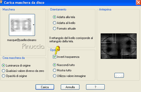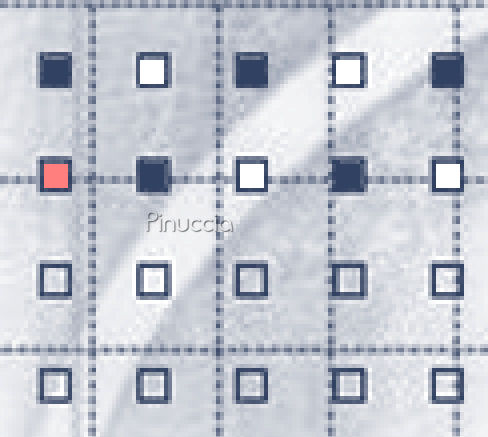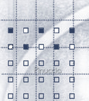 qui puoi trovare qualche risposta ai tuoi dubbi. Se l'argomento che ti interessa non è presente, ti prego di segnalarmelo. Questo tutorial è stato scritto con PSP X, ma può essere eseguito anche con le altre versioni di PSP. Occorrente: Materiale qui I tubes sono di Jet e Marif Per favore rispetta il lavoro degli autori. Non cambiare il nome del file e non cancellare il livello del watermark. Metti la maschera nella cartella Maschere di PSP. Metti il Motivo Muster-silber nella cartella Motivi. Più velocemente, se lo apri e minimizzi nella tua area di lavoro, lo troverai nella lista dei motivi disponibili, quando ti servirà. Ti servirà anche Animation Shop. Questo è il link per una versione free di Animation Shop fornita dalla Jasc. Non sono richiesti codici o registrazioni. E' una versione completa. Approfittane, perchè non so per quanto tempo il link sarà valido. qui Filtri: Bordermania qui Greg's Factory Output II qui Simple qui DSB Flux qui Metti la maschera masque@yaellesdreams.jpg nella cartella Maschere di PSP. Metti il motivo Muster-Silber.jpg nella cartella dei Motivi. Più velocemente, se apri il motivo e lo minimizzi nella tua area di lavoro, lo troverai nella lista dei motivi disponibili quando ti servirà. Imposta il colore di primo piano con #324161, e il colore di sfondo con il bianco (#ffffff). Apri una nuova immagine BIANCA 700 x 500 pixels. Livelli>Nuovo livello raster. Riempi il livello con il colore di primo piano.Livelli>Carica/Salva maschera>Carica maschera da disco. Cerca e carica la maschera masque©yaelledreams.jpg, inverti trasparenza selezionato: ![]() Livelli>Unisci>Unisci gruppo. Per vedere meglio quello che stai facendo, ingrandisci l'immagine almeno del 150%, usando la rotellina del mouse. Se il tuo mouse non ha la rotellina, attiva lo strumento Zoom ![]() Attiva lo strumento Rettangolo , rettangolo.Seleziona il primo quadretto della maschera. ![]() Livelli>Nuovo livello raster. Riempi il quadretto con il colore blu di primo piano.Mantieni selezionato. Selezione>Modifica selezione. ![]() Adesso vedrai l'area selezionata diventare rossa. ![]() Clicca sullo strumento Spostamento per attivarlo.Sposta la selezione sul quadretto successivo. Per evitare spostamenti in senso verticale, usa le frecce della tastiera. sullo spostamento con le frecce, vedi i miei appunti qui Quando hai spostato la selezione sul quadretto successivo: ![]() vai a Selezione>Modifica selezione e vedrai l'area rossa nuovamente selezionata. ![]() Riempi la selezione con il bianco.ricorda che il bianco è impostato come colore di sfondo, quindi per riempire devi cliccare con il tasto destro del mouse. ![]() Selezione>Modifica Selezione. Adesso la superficie è di nuovo rossa. Sposta la selezione sul quadretto successivo,non dimenticare, prima di usare le frecce per spostare il quadretto di cliccare sullo strumento Spostamento per attivarlo. Selezione>Modifica selezione. Riempi con il colore blu.Selezione>Modifica selezione, clicca sullo strumento Spostamento per spostare la selezione, e continua così finchè non avrai completato due righe.![]() Dopo aver riempito l'ultimo quadretto della seconda riga: Selezione>Deseleziona. ![]() Livelli>Duplica. Sempre con le frecce della tastiera (ricordati, prima di usare le frecce, di attivare lo strumento Spostamento )sposta la serie di quadretti sulle successive due righe.![]() Livelli>Duplica. Sposta sulle successive due righe.Livelli>Unisci>Unisci giù. Ripeti Livelli>Unisci>Unisci giù. Adesso le sei righe sono unite in un unico livello. ![]() Livelli>Duplica. Sposta fino a coprire le successive sei righe.Livelli>Unisci>Unisci giù. Adesso l'intera sezione dei quadretti blu-bianco sono uniti in un unico livello (Raster 1). ![]() Livelli>Duplica, per due volte. Nascondi i i livelli delle due copie. Posizionati sul livello Raster 1. Effetti>Plugins>Dsb Flux - Bright Noise. ![]() Posizionati sulla prima copia e rendila nuovamente visibile. Ripeti l'Effetto Bright Noise, ma cambiando il valore Intensity a 40. Chiudi nuovamente il livello. puoi anche lasciare chiuso il livello mentre applichi l'effetto. L'effetto sarà visibile ugualmente. Posizionati sul livello della seconda copia di Raster 1. Ripeti l'Effetto Bright Noise, ma con il valore Intensity a 50. Attiva ora il livello Gruppo Maschera. Effetti>Plugins>Greg's Factory II - Pool Shadow, con i settaggi standard. ![]() Attiva il livello dello sfondo. Apri jet-woman9-november-2007.psp, e vai a Modifica>Copia. Torna al tuo lavoro e vai a Modifica>Incolla come nuovo livello. Immagine>Ridimensiona, all'85%, tutti i livelli non selezionato. Sposta la donna a destra, vicino al bordo.Livelli>Duplica. Posizionati sul livello originale del tube della donna. Effetti>Effetti di distorsione>Vento - intensità 80 da destra. ![]() Ritorna sul livello superiore (la copia del tube). Effetti>Effetti 3D>Sfalsa ombra: ![]() Posizionati sul livello della maschera. Attiva lo strumento Gomma ,e cancella dal viso e dal corpo della donna i segni della maschera. ![]() Effetti>Effetti 3D>sfalsa ombra: ![]() Posizionati nuovamente sul livello di sfondo bianco e riempilo con il colore di primo piano.Effetti>Plugins>Greg's Factory II - Pool Shadow, con i settaggi standard. ![]() Apri il tube Marif_2007_11Novembre_misted_fleurs0169.psp, e vai a Modifica>Copia. Torna al tuo lavoro e vai a Modifica>Incolla come nuovo livello. Regola>Saturazione e tonalità>Viraggio: ![]() Sposta il tube in basso a sinistra,vedi il mio esempio. Attiva ora il livello superiore. Apri Butterflies_PMS.psd. Posizionati su uno dei livelli (non preoccuparti per il colore delle farfalle, lo cambierai dopo), e vai a Modifica>Copia. Torna al tuo lavoro e vai a Modifica>Incolla come nuovo livello. Immagine>Ridimensiona, al 115%, tutti i livelli non selezionato. Immagine>Ruota per gradi - 90 gradi a sinistra, tutti i livelli non selezionato. ![]() Regola>Saturazione e tonalità>Viraggio, con i settaggi precedenti. Sposta le farfalle a sinistra, vicin