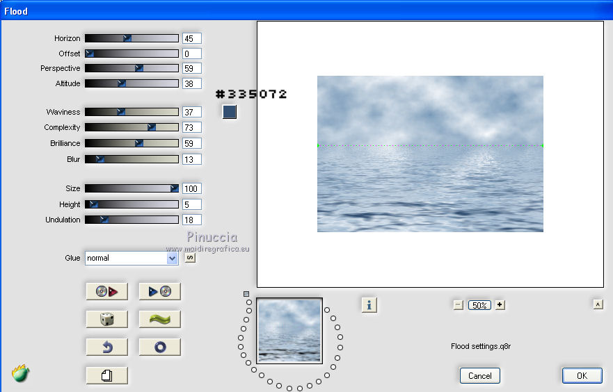 Effetti>Plugins>Flaming Pear - Flood, con il colore #335072.