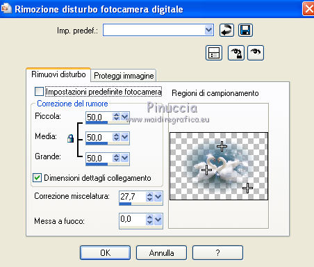 Regola>Rimozione disturbo fotocamera digitale, con i settaggi precedenti.