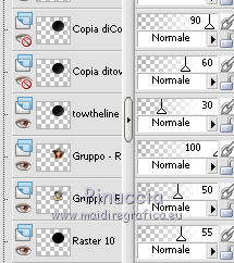 Chiudi il livello della terza copia di "ragno" e apri il livello della quarta copia.
