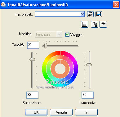 Regola>Tonalità e saturazione>Tonalità/Saturazione/Luminosità.