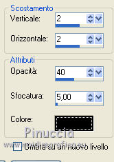 Effetti>Effetti 3D>Sfalsa ombra, con il colore nero - 2 volte, con i seguenti settaggi.