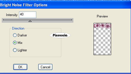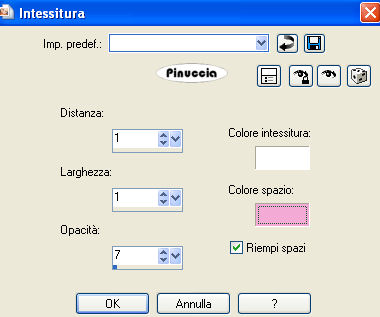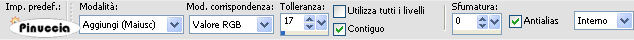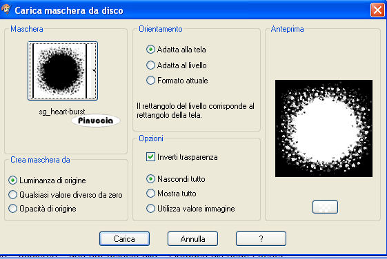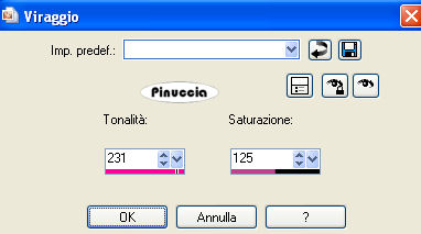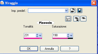 qui puoi trovare qualche risposta ai tuoi dubbi. Se l'argomento che ti interessa non è presente, ti prego di segnalarmelo. Questo tutorial è stato scritto con PSP X2, ma può essere eseguito anche con le altre versioni di PSP. Per tradurlo, l'ho eseguito con PSP X. Occorrente: Un tube a scelta. Il resto del materiale qui I tubes che ho usato sono di Terry e Lori Rhae. Il materiale scrap è di Angie (Scrapset Sweet Candy). Rispetta il lavoro degli autori e mantieni inalterati i tubes. Filtri: DSB Flux qui Ti servirà anche Animation Shop qui Metti la maschera sg_heart-burst.PspMask nella cartella Maschere. Apri una nuova immagine trasparente 600 x 600 pixels. Imposta il colore di primo piano con un colore medio scelto dal tuo tube. Io ho usato #f3aad5. Imposta il colore di sfondo con il bianco. Riempi l'immagine trasparente con il bianco.Livelli>Nuovo livello raster. Riempi il livello con il colore di primo piano.Livelli>Carica/Salva maschera>Carica maschera da disco. Cerca e carica la maschera sg_heart-burst.PspMask ![]() Livelli>Unisci>Unisci gruppo. Apri hearts_sweetcandy_biene.pspimage e vai a Modifica>copia. Torna al tuo lavoro e vai a Modifica>Incolla come nuovo livello. Rinomina questo livello "Cuori". Apri cadre1.psp, e vai a Modifica>copia. Torna al tuo lavoro e vai a Modifica>Incolla come nuovo livello. Attiva lo strumento Bacchetta magica tolleranza 17, sfumatura 0:![]() e clicca sulla striscia chiara della cornice per selezionarla. Non dimenticare i piccoli fori del nastro. ![]() Selezione>Inverti. Regola>Tonalità e Saturazione>Viraggio: ![]() Selezione>Deseleziona. Immagine>Ridimensiona, al 60%, tutti i livelli non selezionato. Immagine>Ruota per gradi - 12 gradi a sinistra: ![]() Sposta la cornice in alto a sinistra.Attiva lo strumento Bacchetta magica con i settaggi precedenti.clicca più volte sul fiocco finchè non è completamente selezionato. Regola>Messa a fuoco>Metti a fuoco. Selezione>Deseleziona. Rinomina questo livello "Cornice". Livelli>Duplica. Immagine>Rifletti. Attiva nuovamente il livello "Cornice". **** Attiva lo strumento Bacchetta magica , sfumatura e tolleranza 0,![]() Clicca all'interno della cornice per selezionarla. Non dimenticare il piccolo buco sotto il nastro. ![]() Livelli>Nuovo livello raster. Selezione>Modifica>Espandi - 4 pixels. Riempi la selezione con il bianco.Selezione>Deseleziona. Livelli>Disponi>Sposta giù. Apri il tuo tube. Attiva lo strumento Selezione e seleziona la parte del tube che vuoi inserire nella cornice.Modifica>copia. Torna al tuo lavoro e vai a Modifica>Incolla come nuovo livello. Immagine>Ruota per gradi - 12 gradi a sinistra. Ingrandisci, se e quanto necessario, e posiziona l'immagine nella cornice a sinistra.Attiva il livello Cornice. Seleziona con la bacchetta magica l'interno della cornice, senza dimenticare il piccolo foro.![]() Selezione>Modifica>Espandi - 6 pixels. Selezione>inverti. Attiva il livello sottostante (la piccola selezione del tube: Raster 3). Premi sulla tastiera il tasto CANC ![]() Selezione>Deseleziona. Sperimenta una modalità di miscelatura per questo livello. Per il mio esempio ho usato Luce netta. Questo dipende, ovviamente, dal tuo tube. Abbassa l'opacità del livello all'80%. Regola>Tonalità e saturazione>Viraggio, con i settaggi precedenti. Attiva nuovamente il livello Cornice. Chiudi tutti i livelli tranne il livello Cornice, la piccola selezione e lo sfondo bianco. ![]() Livelli>Unisci>Unisci visibile. Rinomina nuovamente questo livello "Cornice". ***** Ripeti tutto da ***** a ***** per la cornice a destra, con queste differenze: . puoi usare la stessa selezione del tube o un'altra. . ruota la cornice 12 gradi a destra. ![]() . abbassa l'opacità del livello della piccola selezione del tube al 44%. . alla fine, rinomina il livello uniti "Cornice 2". Rendi nuovamente visibili tutti i livelli. ![]() Attiva il livello "Cornice" Effetti>Effetti 3D>Sfalsa ombra, con i seguenti settaggi, colore nero: ![]() Attiva il livello "Cornice 2". Ripeti l'Effetto Sfalsa ombra. Apri papillon01.psp, e vai a Modifica>copia. Torna al tuo lavoro e vai a Modifica>Incolla come nuovo livello. Immagine>Ridimensiona, tutti i livelli non selezionato, una volta al 40% e una volta all'80%. Immagine>ruota per gradi - 12 gradi a destra. ![]() Sposta la farfalla sulla cornice in alto a destra.Regola>Messa a fuoco>Accentua messa a fuoco. Apri fleur01.psp, e vai a Modifica>copia. nello zip del materiale c'è un altro file con questo nome. Per il mio esempio ho usato questo Torna al tuo lavoro e vai a Modifica>Incolla come nuovo livello. Immagine>Capovolgi. Sposta il fiore in alto tra le cornici.![]() Immagine>Ruota per gradi - 2 gradi a destra. Regola>Messa a fuoco>Metti a fuoco. Effetti>Effetti 3D>Sfalsa ombra, con i seguenti settaggi, colore nero: ![]() Livelli>Duplica. Immagine>Capovolgi. Sposta questo livello in basso sul bordo delle cornici.Livelli>Unisci>Unisci giù. Rinomina questo livello "Fiore". Apri noeud05.psp, e vai a Modifica>copia. Torna al tuo lavoro e vai a Modifica>Incolla come nuovo livello. Immagine>Ridimensiona, al 50%, tutti i livelli non selezionato. Regola>Messa a fuoco>Metti a fuoco. Regola>Tonalità e saturazione>Viraggio: ![]() Immagine>Ruota per gradi - 12 gradi a sinistra. ![]() Sposta il nastro in alto a sinistra.Effetti>Effetti 3D>Sfalsa ombra, con i seguenti settaggi, colore nero. ![]() Attiva il livello Gruppo Raster 2. Apri etoile01.psp, e vai a Modifica>copia. Torna al tuo lavoro e vai a Modifica>Incolla come nuovo livello. Posiziona il tube in basso a sinistra, vedi il mio esempio.Livelli>Duplica. Immagine>Rifletti. Su entrambi i livelli: Effetti>Effetti 3D>Sfalsa ombra, con i seguenti settaggi, colore nero: ![]() Attiva nuovamente il livello superiore. Apri il tuo tube (non dimenticare di togliere la selezione: Selezione>Deseleziona). Modifica>Copia. Torna al tuo lavoro e vai a Modifica>Incolla come nuovo livello. Effetti>Effetti 3D>Sfalsa ombra, con i seguenti settaggi, colore nero. ![