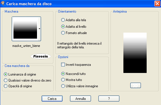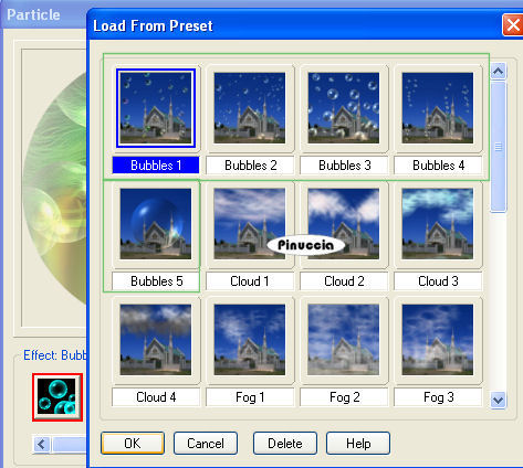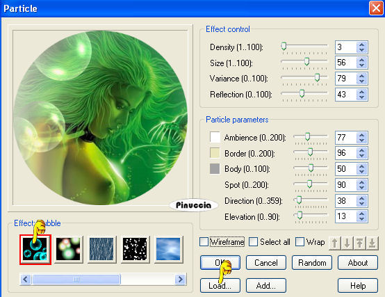 qui puoi trovare qualche risposta ai tuoi dubbi. Se l'argomento che ti interessa non è presente, ti prego di segnalarmelo. Questo tutorial è stato scritto con PSP X2, ma può essere eseguito anche con le altre versioni di PSP. Per tradurlo, ho usato PSP X. ©Biene - tutti i diritti riservati. Il © della traduzione è mio. Occorrente: A scelta due immagini o due tubes. Il resto del materiale qui Per il mio esempio ho usato due tube di Sabi © http://www.josedelnido.com/English/Home.htmlJosé del Nido. Il lavoro di José del Nido non può essere usato senza il permesso dell'autore. Trovi il bel sito di Sabi http://sabis-tuben.de/ qui Il tube porthole_nautica2.psd è ©Biene. Un ringraziamento ai creatori di tubes dei vari gruppi cui appartengo. Il watermark di ognuno è inserito nei tubes. Per favore, rispetta il lavoro degli autori: non cambiare il nome del file e non rimuovere il watermark. Il © appartiene agli artisti originali. Filtri: Ulead Effects - Particle qui ![]() Metti la maschera maske_unten_biene nella cartella Maschere. Apri una nuova immagine trasparente 660 x 460 pixels. Apri Copy_by_José_del_Nido_Green.psp. Attiva il livello di sfondo e vai a Modifica>Copia. non chiudere il tube perchè ti servirà ancora Torna al tuo lavoro e vai a Modifica>Incolla come nuovo livello. Immagine>Ridimensiona, al 65%, tutti i livelli non selezionato. Sposta l'immagine completamente a destra.Livelli>Duplica. Immagine>Rifletti. Livelli>Unisci>Unisci giù. Attiva nuovamente il tube e posizionati sul livello del tube. Modifica>Copia. Torna al tuo lavoro e vai a Modifica>Incolla come nuovo livello. Regola>Sfocatura>Sfocatura gaussiana - raggio 20. ![]() Sposta questo livello a destra.Livelli>Duplica. Immagine>Rifletti. Livelli>Unisci>Unisci giù. Modifica>Incolla come nuovo livello (il tube è ancora in memoria). Spostalo un po' più in basso,e rinomina il livello "tube". Livelli>Duplica. Apri il tube Copy_by_José_del_Nido_El_Demonio_De_Escocia.psp. Attiva il livello "Tube 2" e vai a Modifica>Copia. Torna al tuo lavoro e vai a Modifica>Incolla come nuovo livello. sposta il tube al centro del tuo lavoro, perchè - se l'immagine rimane fuori dai bordi - verrà tagliata dall'applicazione della maschera Livelli>Carica/Salva maschera>Carica maschera da disco. Cerca e carica la maschera maske_unten_biene: ![]() Livelli>Unisci>Unisci gruppo. Posiziona correttamente il tube come nell'esempio.![]() Apri porthole_nautica2.psd e vai a Modifica>Copia. Torna al tuo lavoro e vai a Modifica>Incolla come nuovo livello. Effetti>Effetti 3D>Sfalsa ombra, con il colore nero. ![]() Attiva nuovamente il livello Copia di tube. Attiva lo strumento Selezione , cerchio,e seleziona l'oblò come nell'esempio. ![]() Selezione>Inverti. Premi sulla tastiera il tasto CANC. Selezione>Deseleziona. Effetti>Plugins>Ulead Effects - Particle. Seleziona Bubble e clicca su Load per scegliere le impostazioni che preferisci. ![]() ![]() Controlla se sul viso della donna sono visibili le bolle; in questo caso, attiva lo strumento Gomma e "pulisci" il viso della donna.![]() Attiva nuovamente il livello superiore. Livelli>Nuovo livello raster. Selezione>Seleziona tutto. Selezione>modifica>Contrai - 15 pixels. Immagine>Ritaglia la selezione. Duplica l'immagine usando la combinazione maiuscola+D e metti da parte la copia. Continua sul tuo lavoro. Selezione>Seleziona tutto. Immagine>Aggiungi bordatura, 1 pixel, simmetriche, con il colore bianco. Selezione>Inverti. Riempi con il motivo oro.Selezione>Seleziona tutto. Immagine>Aggiungi bordatura, 25 pixels, simmetriche, con il colore bianco. Selezione>Inverti. Livelli>Nuovo livello raster. Attiva l'immagine che hai messo da parte prima e posizionati sul livello Raster 2. Modifica>Copia. Torna al tuo lavoro e vai a Modifica>Incolla nella selezione. Livelli>Nuovo livello raster. Selezione>Inverti. Effetti>Effetti 3D>Sfalsa ombra, con il colore nero. ![]() Ripeti l'Effetto Sfalsa ombra, cambiando verticale e orizzontale con -2. ![]() Selezione>Deseleziona. Livelli>Nuovo livello raster. Riempi con il motivo oro.Selezione>Modifica>Contrai - 1 pixel. Premi sulla tastiera il tasto CANC. Selezione>Deseleziona. Scrivi un testo e il tuo nome e/o il tuo watermark, senza dimenticare eventuali copyright delle immagini usate. Per il mio testo ho usato il font Dustbowl Clementine Livelli>Unisci>Unisci tutto e salva in formato jpg.