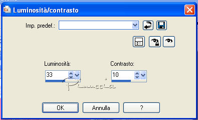 Regola>Luminosità e contrasto>Luminosità e contrasto - 2 volte, con i seguenti settaggi.