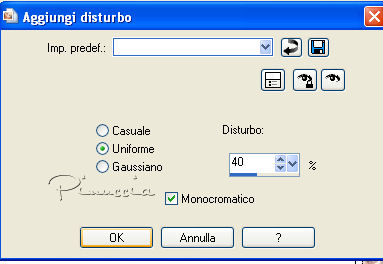 Regola>Aggiungi/Rimuovi disturbo>Aggiungi disturbo, con i settaggi precedenti.