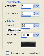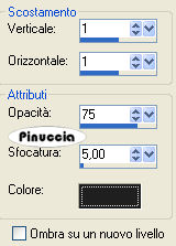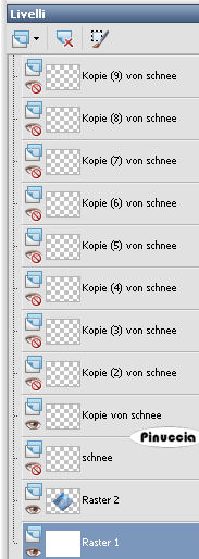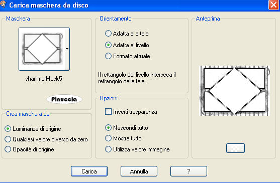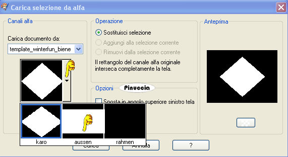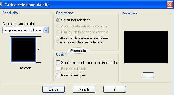 qui puoi trovare qualche risposta ai tuoi dubbi. Se l'argomento che ti interessa non è presente, ti prego di segnalarmelo. Questo tutorial è stato scritto con PSP X, ma può essere eseguito anche con le altre versioni di PSP. Occorrente: Un tube a scelta. Il tube che ho usato è di Gerry. Il resto del materiale qui Il materiale Scrap è di Scrapy Expressions (dal kit Let it Snow: nello zip trovi i termini d'uso). L'altro file scrap è di Jill, la maschera è di Sharlimar. Per il template, Biene ha usato la neve di Bieke. Rispetta il lavoro degli autori e mantieni inalterati i tubes. Metti la maschera nella cartella Maschere. Filtri: Greg's Factory Output II qui Ti servirà anche Animation Shop qui Imposta il colore di primo piano con #75a2c5, e il colore di sfondo con il bianco: #ffffff. Apri template_winterfun_biene. L'immagine - che sarà la base del tuo lavoro - è formata da dieci livelli neve, e contiene le selezioni salvate sul canale alfa. Lascia tutti i livelli chiusi, per il momento. Posizionati sul livello Raster 1. Riempi il livello con il bianco.ricorda che, per riempire con il colore di sfondo, devi cliccare con il tasto destro del mouse. Apri schneelandschaft2.jpg, e vai a Modifica>Copia. Torna al tuo lavoro e vai a Modifica>Incolla come nuovo livello. Immagine>Ridimensiona, al 120%, tutti i livelli non selezionato. Selezione>Carica/Salva selezione>Carica selezione da canale alfa. La selezione "karo" è già presente. Devi soltanto cliccare Carica. ![]() Selezione>Inverti. Premi sulla tastiera il tasto canc ![]() ![]() Selezione>Deseleziona. Posizionati sul livello superiore. Livelli>Nuovo livello raster. Selezione>Carica/Salva selezione>Carica selezione da canale alfa. Apri il menu cliccando sulla freccia a fianco del box, seleziona Aussen e clicca Carica: ![]() Riempi la selezione con il colore di primo piano.Selezione>Deseleziona. Livelli>Carica/Salva maschera>Carica maschera da disco. Cerca e carica la maschera sharlimarMask5: ![]() Livelli>Unisci>Unisci gruppo. Selezione>Carica/Salva selezione>Carica selezione da canale alfa. Carica nuovamente la selezione karo. Premi sulla tastiera il tasto CANC. Selezione>Deseleziona. Livelli>Duplica. Effetti>Plugins>Greg's Factory Output II - Pool Shadow: ![]() Regola>Sfocatura>Sfocatura gaussiana, raggio: ![]() Ripeti ancora una volta Regola>Sfocatura>Sfocatura gaussiana (puoi fare anche Modifica>Ripeti Sfocatura gaussiana). Livelli>Nuovo livello raster. Selezione>Carica/Salva selezione>Carica selezione da canale alfa. Carica nuovamente la selezione Aussen. Selezione>Inverti. Riempi la selezione con il colore di primo piano.Selezione>Deseleziona. Livelli>Nuovo livello raster. Selezione>Carica/Salva selezione>Carica selezione da canale alfa. Cerca e carica la selezione Rahmen. ![]() Riempi la selezione con il colore bianco di sfondo.Selezione>Deseleziona. ![]() Apri jab_white_winter.psd, posizionati sul livello "Merged" e vai a Modifica>Copia. Torna al tuo lavoro e vai a Modifica>Incolla come nuovo livello. Sposta il tube in basso a completamente a destra,vedi il mio esempio. ![]() Selezione>Carica/Salva selezione>Carica selezione da canale alfa. Carica nuovamente la selezione Aussen. Selezione>Inverti. Premi sulla tastiera il tasto CANC. Selezione>Deseleziona. Apri SE_LetItSnow_Bow.pspimage, e vai a Modifica>copia. Torna al tuo lavoro e vai a Modifica>Incolla come nuovo livello. Immagine>Ridimensiona, al 50%, tutti i livelli non selezionato. Sposta il tube sulla punta della maschera.Effetti>Effetti 3D>Sfalsa omba: ![]() Livelli>Duplica. Immagine>Capovolgi. Attiva il livello Raster 4. Apri il tube della donna e vai a Modifica>copia. Torna al tuo lavoro e vai a Modifica>Incolla come nuovo livello. Se necessario, ridimensiona (Immagine>Ridimensiona...) il tube. Spostalo a sinistra.Livelli>Duplica. Posizionati sul livello originale del tube. Effetti>Effetti di distorsione>Vento, da destra, intensità 80. ![]() Ritorna sul livello della copia del tube. Effetti>Effetti 3D>Sfalsa ombra: ![]() Posizionati ora sul livello superiore. Selezione>Seleziona tutto. Selezione>Modifica>Contrai, di 2 pixels. Selezione>Inverti. Livelli>Nuovo livello raster. Riempi la selezione con il bianco.Selezione>Deseleziona. Se vuoi, questo è il momento di aggiungere il tuo nome alla tag. Apri il livello Schnee e controlla che tutti i livelli della copia siano chiusi. ![]() Modifica>Copia Unione. Apri Animation Shop e vai a Modifica>Incolla>Incolla come nuova animazione. Torna in PSP. Chiudi il livello "Schnee" e rendi visibile il livello della copia di Schnee: ![]() Modifica>Copia Unione. Torna in Animation Shop e vai a Modifica>Incolla>Incolla dopo il fotogramma corrente. Ancora in PSP. Chiudi il livello della copia di Schnee e rendi visibile il livello successivo. ![]() Di nuovo in Animation Shop: Modifica>Incolla>Incolla dopo il fotogramma corrente. E così via, per tutti i successivi livelli fino al livello Copia(9) di Schnee. Alla fine in Animation Shop avrai la tua animazione composta da 10 fotogrammi. Controlla il risultato cliccando su Visualizza e salva in formato gif.Questo è il risultato senza l'animazione: ![]() ![]() Se hai problemi o dubbi, o trovi un link non funzionante, o anche soltanto per un saluto, scrivimi 19 Dicembre 2007 |