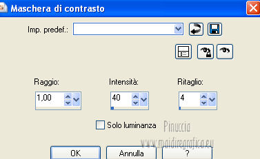 Regola>Messa a fuoco>Maschera di contrasto, con i settaggi precedenti.