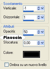 Effetti>Effetti 3D>Sfalsa ombra, con i seguenti settaggi, colore nero:
