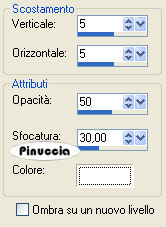 Effetti>Effetti 3D>sfalsa ombra, con i seguenti settaggi, colore bianco.