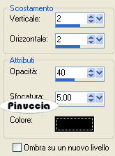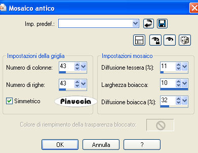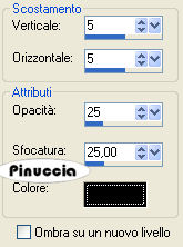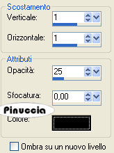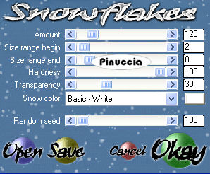 qui puoi trovare qualche risposta ai tuoi dubbi. Se l'argomento che ti interessa non è presente, ti prego di segnalarmelo. Questo tutorial è stato scritto con PSP X2, ma può essere eseguito anche con le altre versioni di PSP. Per tradurlo, ho usato PSP X. Occorrente: Materiale qui Il tube della ragazza è di Annie ©Hitana Il materiale scrap è di Kreative_expressionz. Trovi nello zip i termini d'uso di Debbie. Il tube degli alberi è di ©Rainbow Coffi. Un ringraziamento ai creatori di tubes dei vari gruppi cui appartengo. Per favore, rispetta il loro lavoro e mantieni i tubes al loro stato originale. Filtri: VDL Adrenalin - Snowflakes qui Graphics Plus - Cross Shadow qui Ti servirà anche Animation Shop qui Apri una nuova immagine trasparente 600 x 600 pixels, e riempila con il colore bianco.Apri lo scrapkit winterwonderland-zip.pspimage. Attiva il livello frame2 e vai a Modifica>copia. Torna al tuo lavoro e vai a Modifica>Incolla come nuovo livello. Immagine>Ridimensiona, 2 volte al 125%, tutti i livelli non selezionato. Regola>Messa a fuoco>Metti a fuoco. Regola>Tonalità e saturazione>Viraggio: ![]() Livelli>Duplica. Livelli>Disponi>Sposta giù. Effetti>Effetti di trama>Mosaico antico: ![]() Attiva nuovamente il livello superiore. Attiva lo strumento Bacchetta magica ![]() ![]() e clicca all'interno della cornice per selezionarla. Selezione>Modifica>Espandi - 3 pixels. Livelli>Nuovo livello raster. Imposta il colore di primo piano con #b2d0f2, e il colore di sfondo con il bianco. Passa il colore di primo piano a Gradiente di primo piano/sfondo, con i seguenti settaggi: ![]() Riempi la selezione con il gradiente.Selezione>Deseleziona. Livelli>Disponi>Sposta giù. Apri V~WhiteForest11.psd e vai a Modifica>Copia. Torna al tuo lavoro e vai a Modifica>Incolla come nuovo livello. Immagine>Ridimensiona, all'85%, tutti i livelli non selezionato. Sposta il tube un po' più in basso in modo che si vedano le cime degli alberi.Attiva nuovamente il livello della cornice. Clicca con la bacchetta magica all'interno della cornice per selezionarla.Selezione>Modifica>Espandi - 3 pixels. Selezione>Inverti. Attiva il livello sottostante. Premi sulla tastiera il tasto CANC. Selezione>Deseleziona. Livelli>Unisci>Unisci giù. Rinomina questo livello "Paesaggio" Attiva nuovamente il livello superiore. Effetti>Effetti 3d>Sfalsa ombra, con i seguenti settaggi, colore nero: ![]() Attiva nuovamente lo scrapkit e posizionati sul livello "Garland". Modifica>Copia. Torna al tuo lavoro e vai a Modifica>Incolla come nuovo livello. Sposta la ghirlanda in alto vicino al bordo.Effetti>Effetti 3D>Sfalsa ombra, con i seguenti settaggi, colore nero. ![]() Apri lo scrapkit e posizionati sul livello Snowmanbauble. Modifica>Copia. Torna al tuo lavoro e vai a Modifica>Incolla come nuovo livello. Immagine>Ridimensiona, 1 volta all'85%, e una volta all'80%, tutti i livelli non selezionato. Regola>Messa a fuoco>Metti a fuoco. Immagine>Rifletti. Sposta il globo sopra la ghirlanda.Livelli>Disponi>Sposta giù. Effetti>Effetti 3D>Sfalsa ombra con i seguenti settaggi, colore nero. ![]() ![]() Livelli>Duplica. Immagine>Rifletti. Sposta la pallina sotto la prima pallina a sinistra.Apri ancora una volta lo scrapkit e posizionati sul livello "Snowman". Modifica>Copia. Torna al tuo lavoro e vai a Modifica>Incolla come nuovo livello. Immagine>Ridimensiona, una volta all'80% e una volta al 75%, tutti i livelli non selezionato. Regola>Messa a fuoco>Metti a fuoco. Regola>Tonalità e Saturazione>Viraggio, con i settaggi precedenti. Sposta il pupazzo di neve sulla pallina.Il gancio della pallina adesso sembra attaccato al pupazzo di neve. Attiva il livello sottostante. Attiva lo strumento Gomma , dimensioni 47, opacità 100,e cancella la parte della pallina rimasta visibile sotto il pupazzo di neve. ![]() Attiva nuovamente il livello del pupazzo di neve. Effetti>Effetti 3D>sfalsa ombra, con i seguenti settaggi, colore nero. ![]() Livelli>Unisci>Unisci giù. Apri Hitanawhite1.psp e vai a Modifica>Copia. Torna al tuo lavoro e vai a Modifica>Incolla come nuovo livello. Immagine>Ridimensiona, 2 volte all'85%, tutti i livelli non selezionato. Regola>Messa a fuoco>Metti a fuoco. Sposta il tube in basso a destra.Effetti>Effetti 3D>Sfalsa ombra, con i seguenti settaggi, colore nero: ![]() Apri BOW.psp e vai a Modifica>Copia. Torna al tuo lavoro e vai a Modifica>Incolla come nuovo livello. Immagine>Ridimensiona, al 75%, tutti i livelli non selezionato. Regola>Tonalità e saturazione>Viraggio, con i settaggi precedenti. Immagine>Ruota per gradi - 25 gradi a destra. Regola>Messa a fuoco>Metti a fuoco. Posiziona il nastro sulla cornice in basso a sinistra.Effetti>Effetti 3D>Sfalsa ombra, con i seguenti settaggi, colore nero: ![]() Se vuoi, puoi aggiungere altri elementi alla tua immagine. Livelli>Nuovo livello raster. Selezione>Seleziona tutto. Selezione>Modifica>Contrai - 5 pixels. Selezione>inverti. Riempi la selezione con il colore #b2d0f2.Selezione>Deseleziona. Effetti>Plugins>Graphics Plus - Cross Shadow: ![]() Livelli>Nuovo livello raster. Selezione>Seleziona tutto. Selezione>Modifica>Contrai - 2 pixels. Riempi con il colore bianco.Selezione>Modifica>Contrai - 1 pixel. Premi sulla tastiera il tasto CANC. Selezione>Deseleziona. Aggiungi il tuo nome e/o il tuo watermark. Attiva il livello "Paesaggio". Effetti>Plugins>VDL Adrenaline - Snowflakes: ![]() Modifica>Copia Unione. Se stai usando X2: Modifica>Copia Speciale>Copia Unione. Apri Animation Shop e vai a modifica>Incolla>Incolla come nuova animazione. Torna in PSP. Modifica>Annulla azione Snowflakes. Ripeti l'Effetto Snowflakes con gli stessi settaggi, ma portando Random Seed a 200. Modifica>Copia Unione. Torna in Animation Shop e vai a Modifica>Incolla>Incolla dopo il fotogramma corrente. Di nuovo in PSP. Modifica>Annulla Azione Snowflakes. Ripeti l'Effetto Snowflakes, portando Random Seed a 300. Modifica>Copia Unione. Per finire, in Animation Shop: Modifica>Incolla>Incolla dopo il fotogramma c