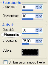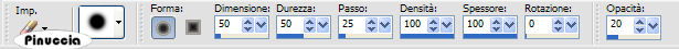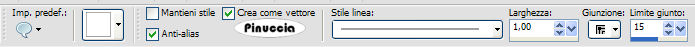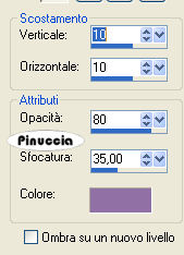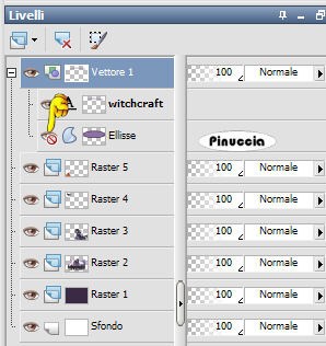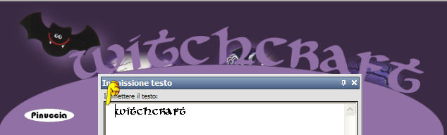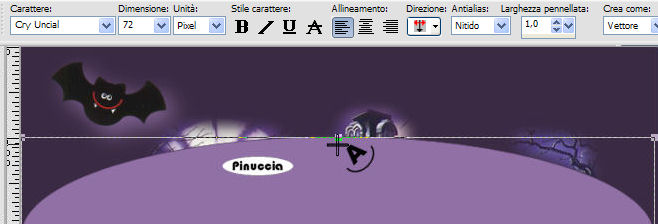 qui puoi trovare qualche risposta ai tuoi dubbi. Se l'argomento che ti interessa non è presente, ti prego di segnalarmelo. Questo tutorial è stato scritto con PSP X. Occorrente: Materiale qui Apri una nuova immagine BIANCA 700 x 500 pixels. Livelli>Nuovo livello raster. Riempi il nuovo livello con un colore scuro preso dal tube.Io ho usato #3b2b43. Imposta il colore di sfondo con un colore chiaro preso dal tube. Io ho usato #9070a5. Apri il tube "ALL HALLOWS EVE~420WW.psp" e vai a Modifica>Copia. Torna al tuo lavoro e vai a Modifica>Incolla come nuovo livello. Attiva lo strumento Gomma con i seguenti settaggi:imposta l'opacità a tua discrezione, a seconda del risultato che vuoi ottenere. ricorda che se qualcosa non ti piace puoi annullare con Modifica>Annulla pennello Gomma e rifare ![]() Cancella con cautela, a sinistra e a destra, i segni netti del bordo. per mostrarti l'esempio, ho tolto la visibilità al livello riempito con il colore scuro. ![]() Questo, più o meno, dovrebbe essere il risultato se hai nascosto il livello inferiore, ricordati di renderlo nuovamente visibile. ![]() Apri il tube "amyb-calendar_october_ben1.psp", e vai a Modifica>Copia. Torna al tuo lavoro e vai a Modifica>Incolla come nuovo livello. Immagine>Ridimensiona, al 70%, tutti i livelli non selezionato. Sposta il tube in basso a destra.Fai coincidere i bordi del tube con quelli della tag: ![]() Effetti>Effetti 3D>Sfalsa ombra, con i seguenti settaggi, colore nero: ![]() Apri il tube "coolbat_pchy.psp", e vai a Modifica>Copia. Torna al tuo lavoro e vai a Modifica>Incolla come nuovo livello. Immagine>Ridimensiona, al 70%, tutti i livelli non selezionato, 2 volte. Sposta il pipistrello nell'angolo in alto a sinistra.Effetti>Effetti 3D>Sfalsa ombra, con i settaggi precedenti, ma con il colore chiaro di sfondo. ![]() Apri il tube "ME-Halloween05_molly.psp", e vai a Modifica>Copia. Torna al tuo lavoro e vai a Modifica>Incolla come nuovolivello. Immagine>Ridimensiona, al 50%, tutti i livelli non selezionato. Sposta la zucca contro il bordo, in basso a sinistra.Effetti>Effetti 3D>Sfalsa ombra, con i settaggi precedenti: ![]() Attiva lo strumento Forme predefinite , Ellisse,![]() e disegna un'ellisse come nel mio esempio. ![]() passando il mouse sulla griglia della forma, quando appare la freccia con il quadratino bianco puoi correggere le dimensioni della forma, quando appare il segno dello spostamento (manina rossa), puoi spostare la forma Livelli>Nuovo livello raster. Attiva lo strumento Testo .Imposta il colore di sfondo con il colore chiaro. Scegli un bel font (io ho usato il font Cry Unical, dimensione 72, pennellata 1. ![]() Passa il mouse sull'ellisse e, quando vedi apparire una A sottolineata da una mezza luna, clicca con il tasto sinistro del mouse, per far apparire la finestra del testo. ![]() se il testo è troppo a sinistra, puoi aggiungere degli spazi vuoti prima del testo per spostarlo. Scrivi Witchcraft, o il testo che preferisci. Nella paletta dei livelli, apri il menu del livello vettore cliccando sul segno più, e nascondi il livello Ellisse (puoi anche eliminarlo, è la stessa cosa). ![]() Livelli>Converti in livello raster. E avrai il tuo testo senza la forma che ti è servita come guida per arrotondarlo. Sposta il testo in alto.Effetti>Effetti 3D>Sfalsa ombra, con i settaggi usati all'inizio. Aggiungi, se vuoi, il tuo nome e/o il tuo watermark. Immagine>Aggiungi bordatura, 2 pixels, simmetriche, con il colore nero. Salva in formato jpg. ![]() ![]() Se hai problemi o dubbi, o trovi un link non funzionante, o anche soltanto per un saluto, scrivimi. 25 Settembre 2007 |
