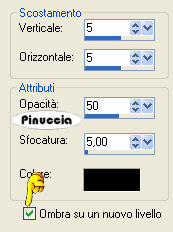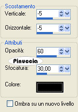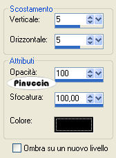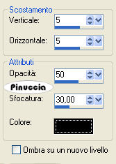 il tasto CANC Selezione>Deseleziona. Cambia la modalità di miscelatura di questo livello in Luminanza, e abbassa l'opacità al 50%. Effetti>Effetti 3D>Sfalsa ombra, con i seguenti settaggi, colore nero.