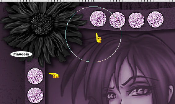 Attiva il livello superiore. Apri il tube di Biene Vorlage hw3_biene_buttons.pspimage e vai a Modifica>Copia. Torna al tuo lavoro e vai a Modifica>Incolla come nuovo livello. Posiziona Rinomina questo livello "Disturbo". Apri hw3_biene_diamondbutton.pspimage e vai a Modifica>Copia. Torna al tuo lavoro e vai a Modifica>Incolla come nuovo livello. Selezione>Seleziona tutto. Regola>Tonalità