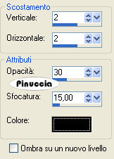 Effetti>Effetti 3D>Sfalsa ombra, con i seguenti settaggi, colore nero.